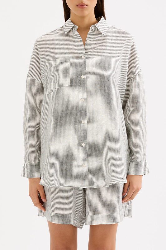 SAVE 30%LOUNGE STRIPE LINEN SHIRT
