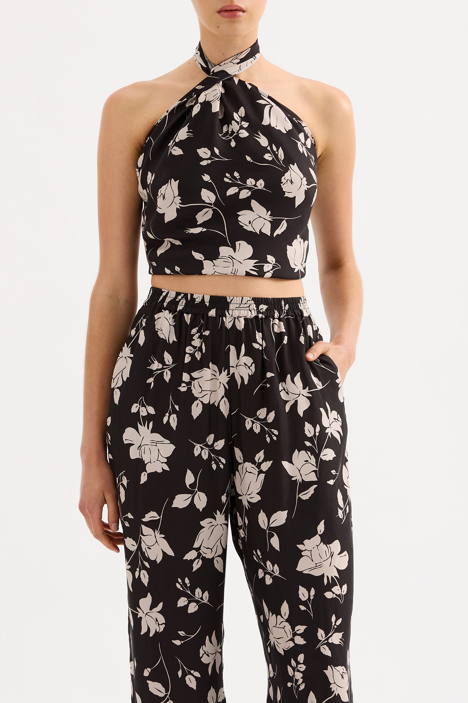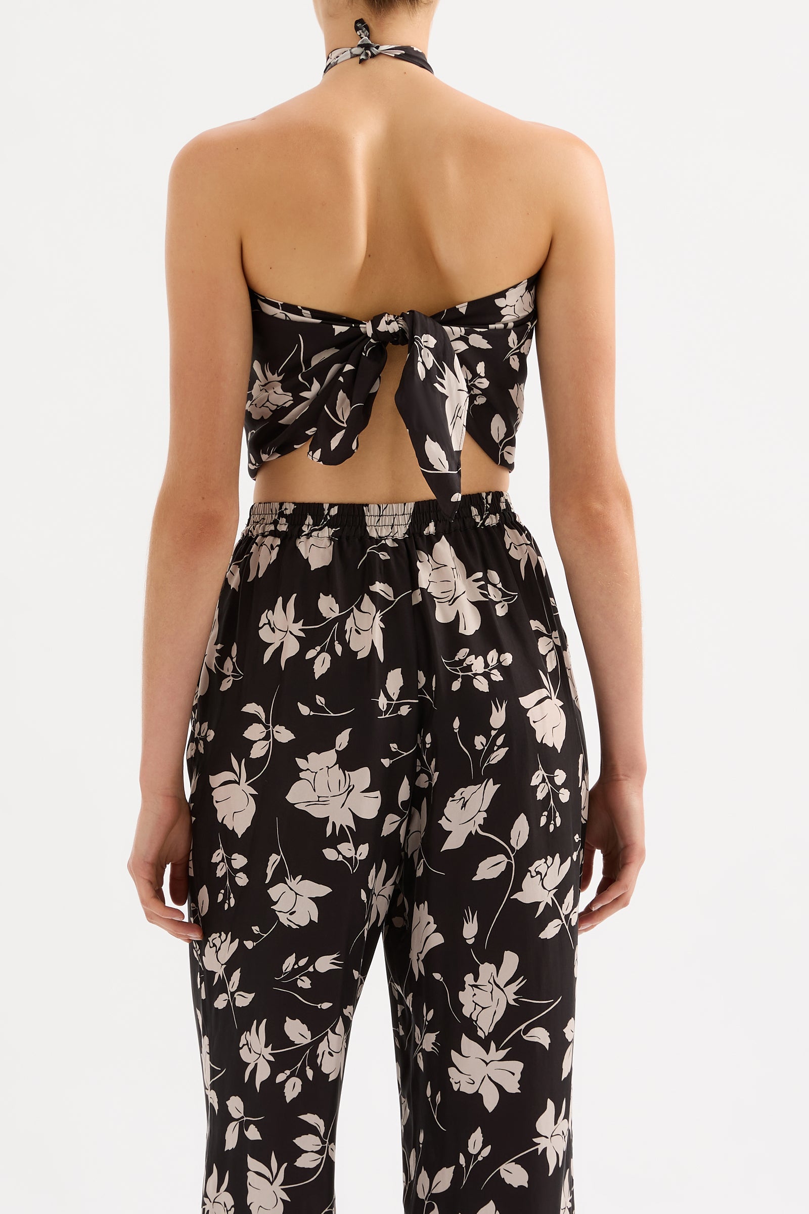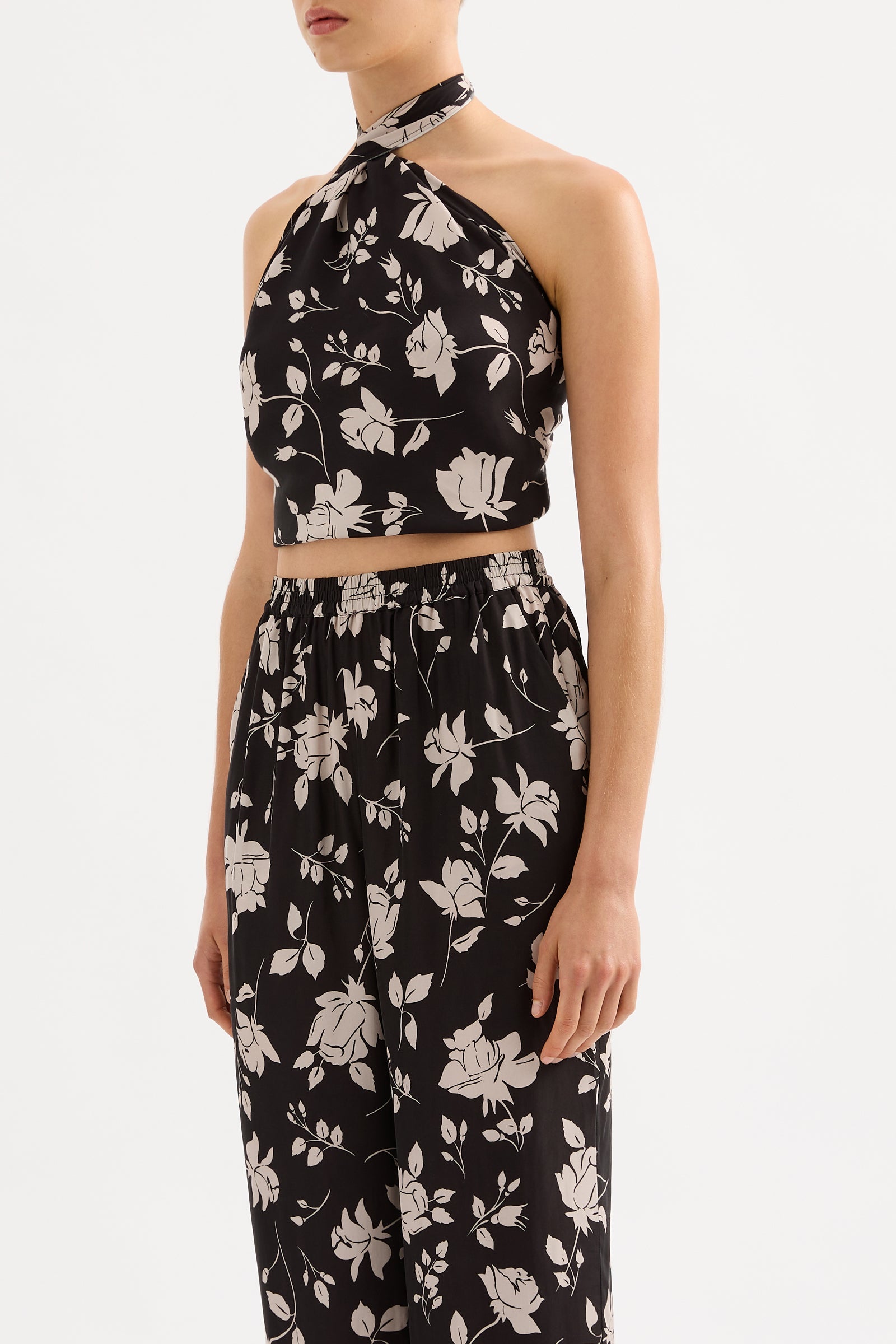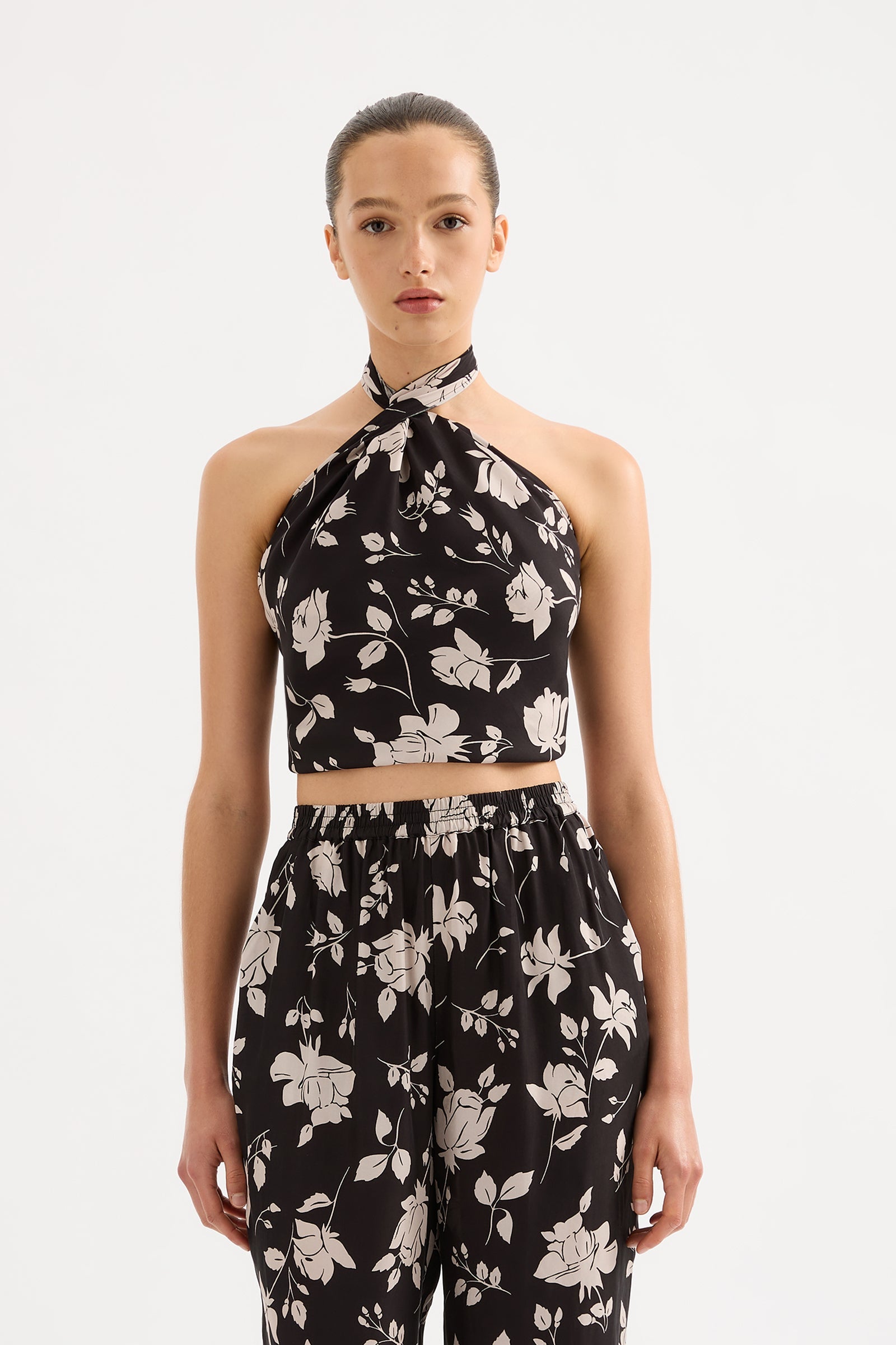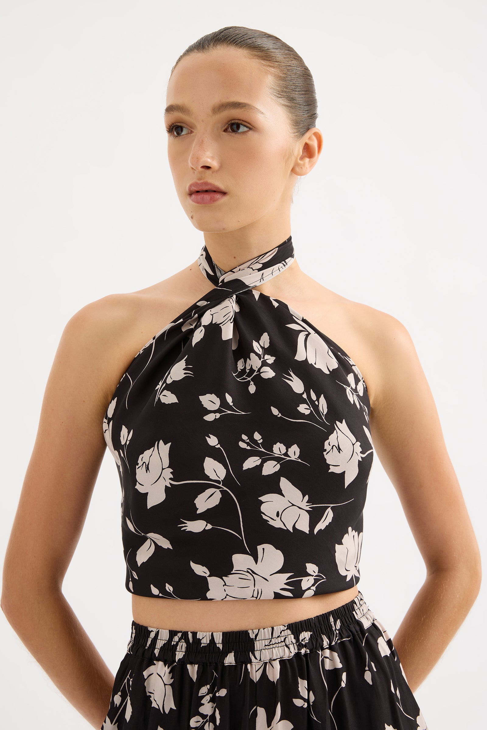 The Alba Cupro Scarf is made in our signature cupro fabrication signature cupro fabrication in our exclusive Alba print. The scarf is a smooth single layer piece with a neat double turned hem. Designed with versatility, this scarf can be worn as either a top, head scarf, or bag accessory.