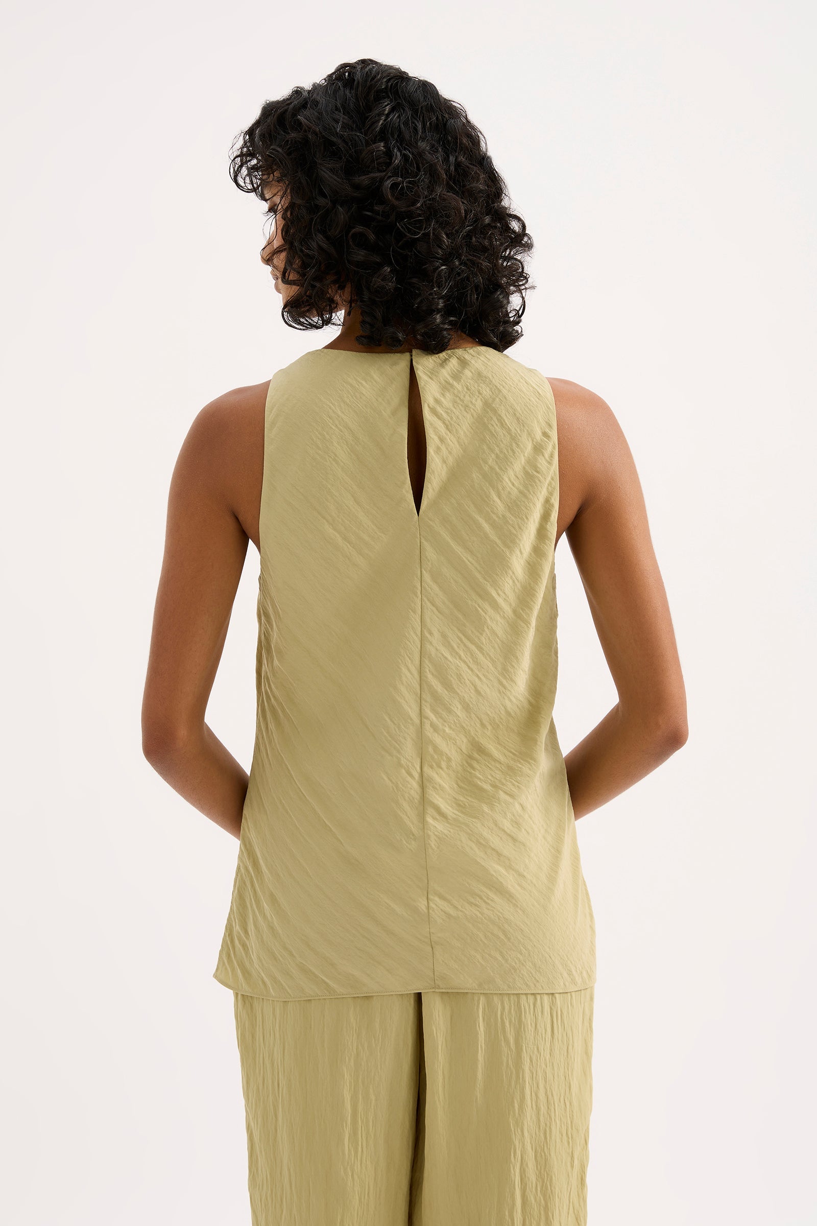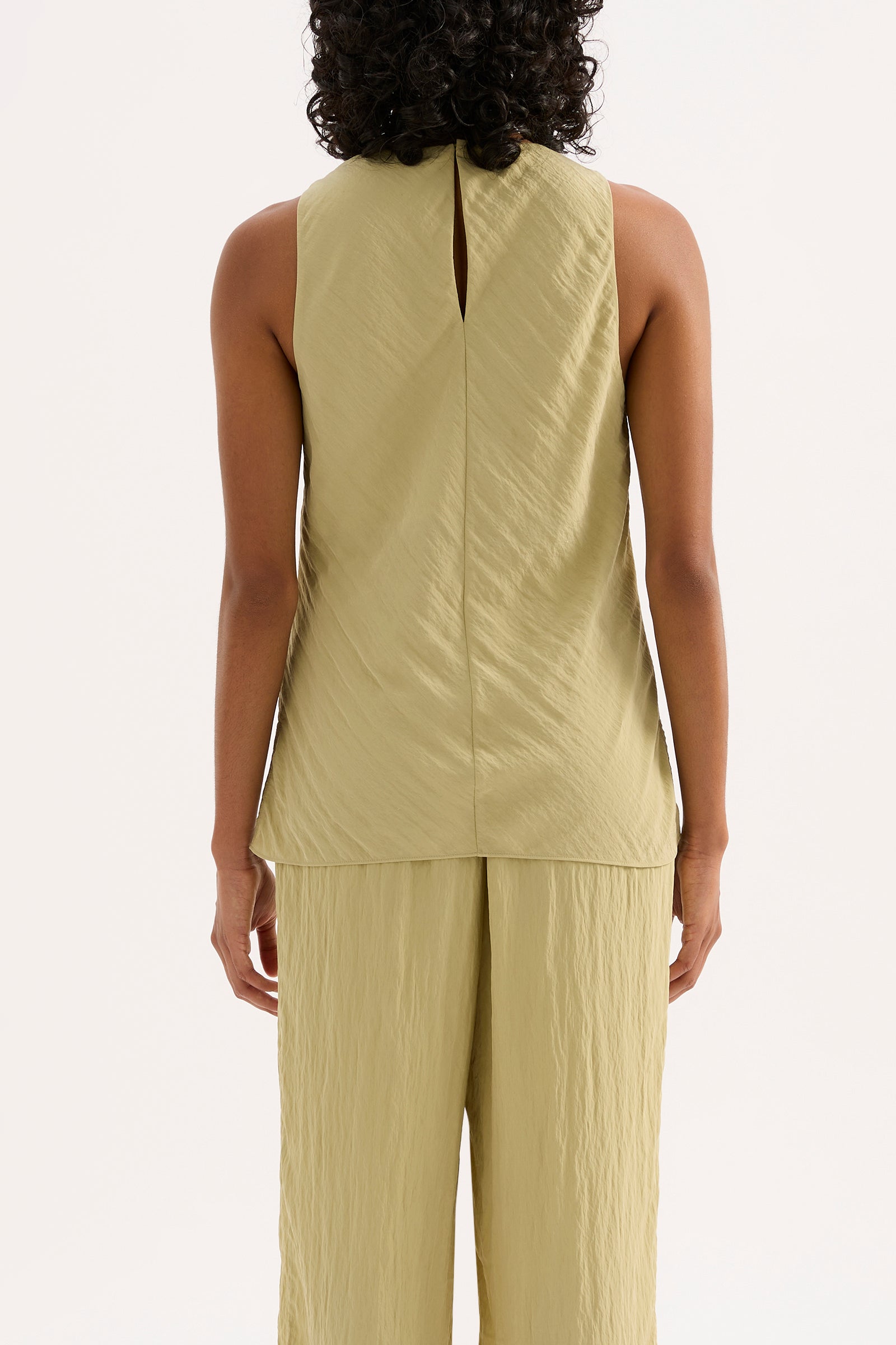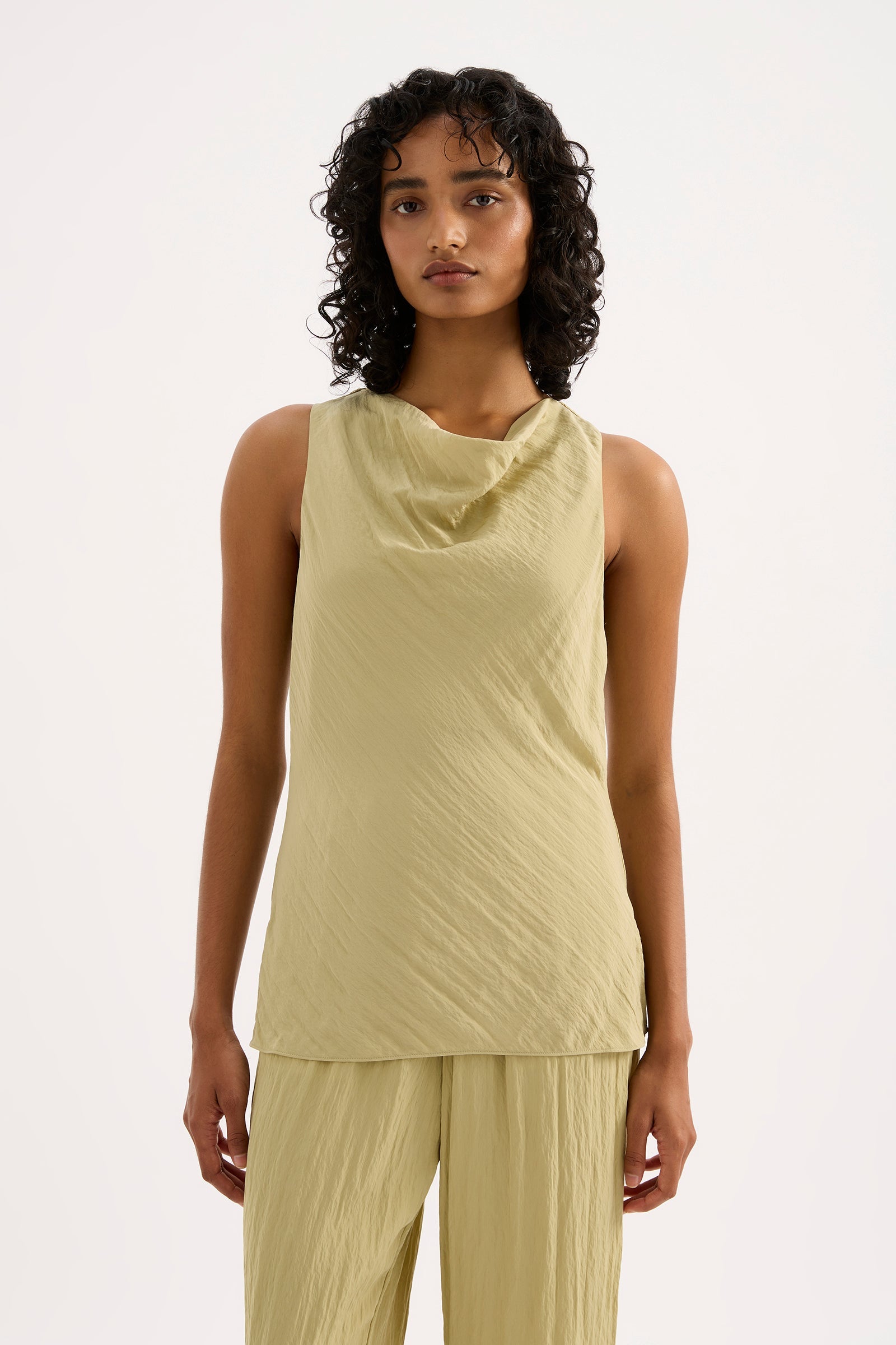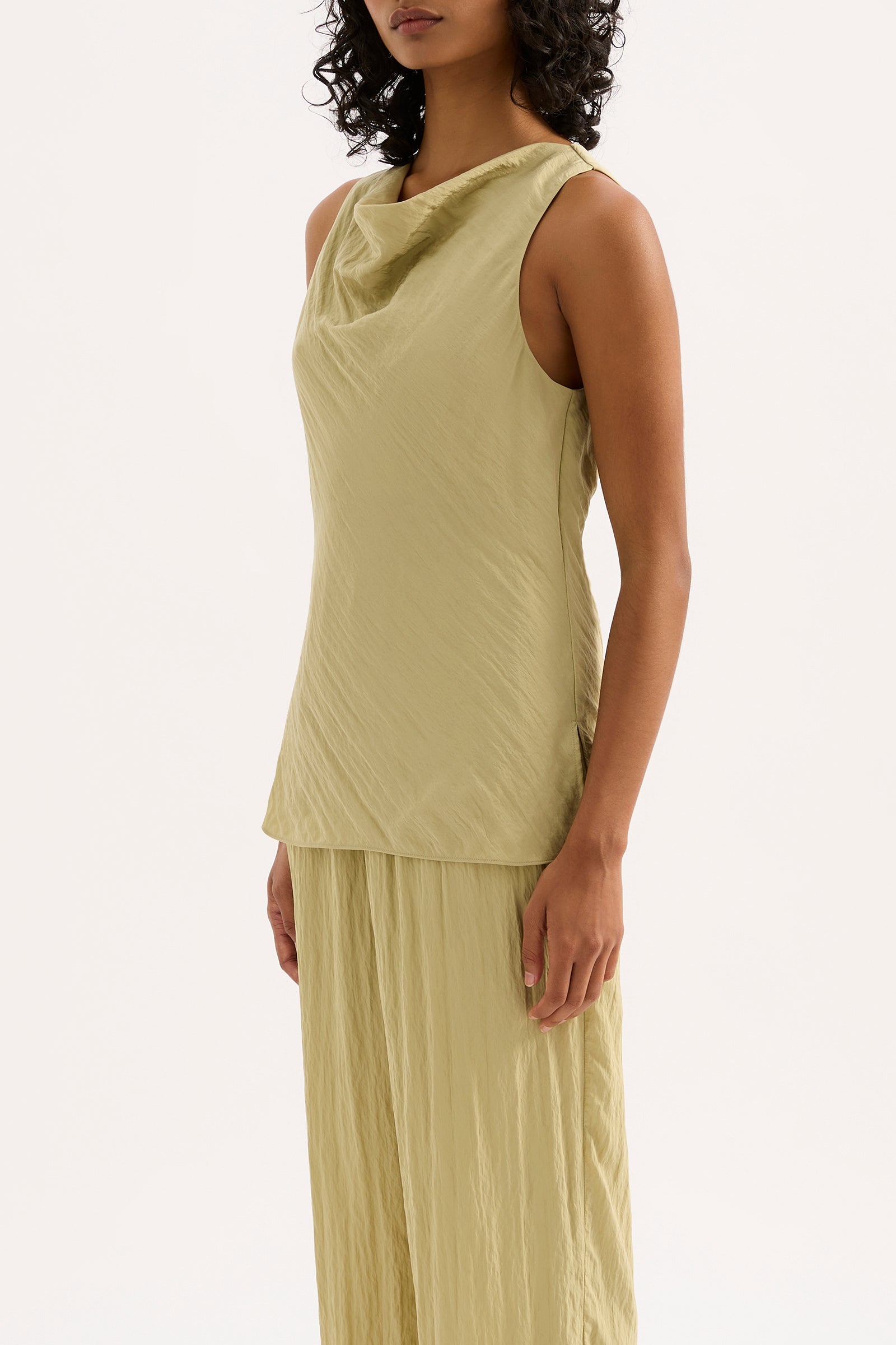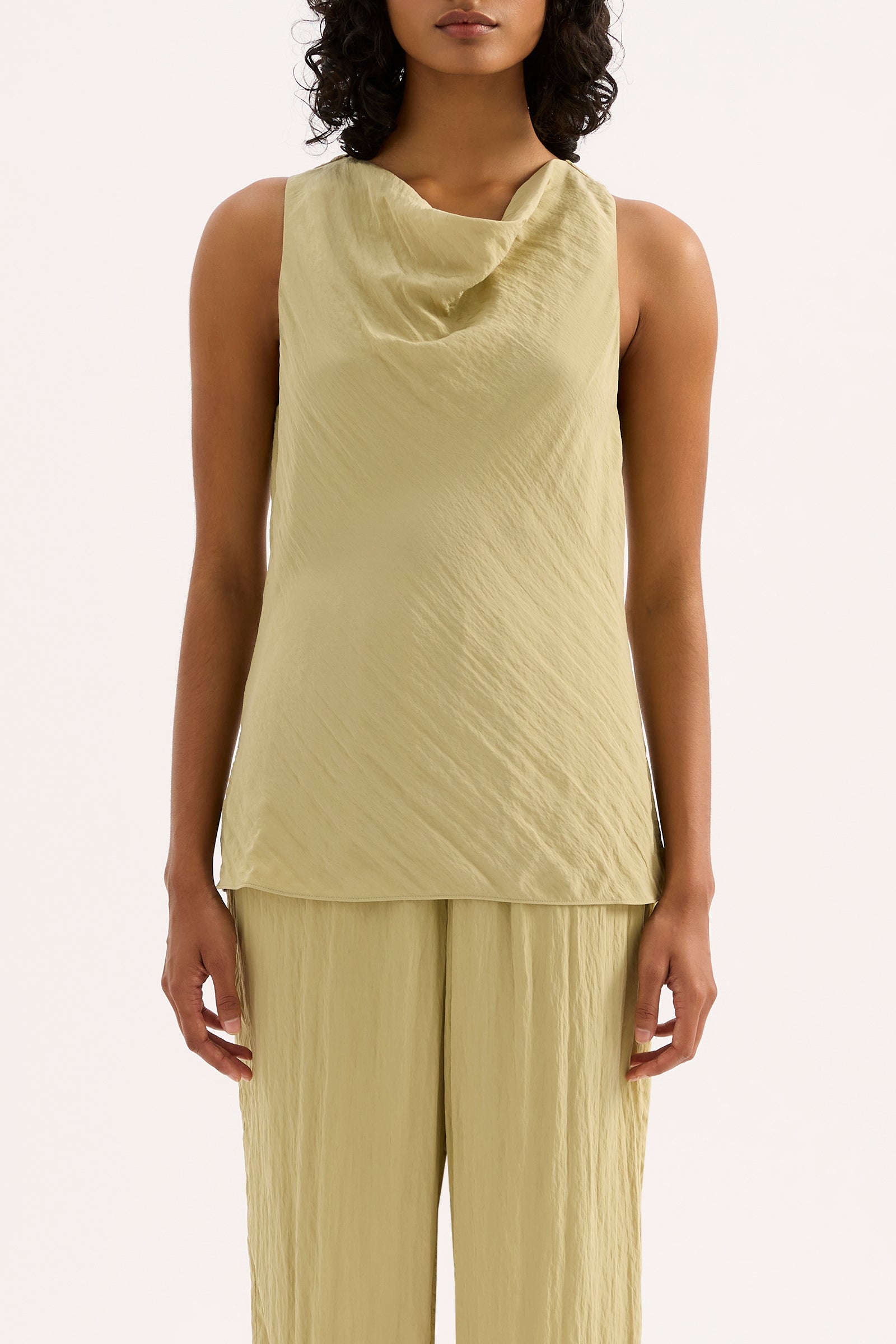 The Alia Top is made from a viscose blend fabric which is lightweight and has a soft, textured hand feel. Cut on the bias, this silhouette drapes over the body softly and finishes below the hip. Features include a soft cowl neckline, keyhole opening at centre back and side seam slits.