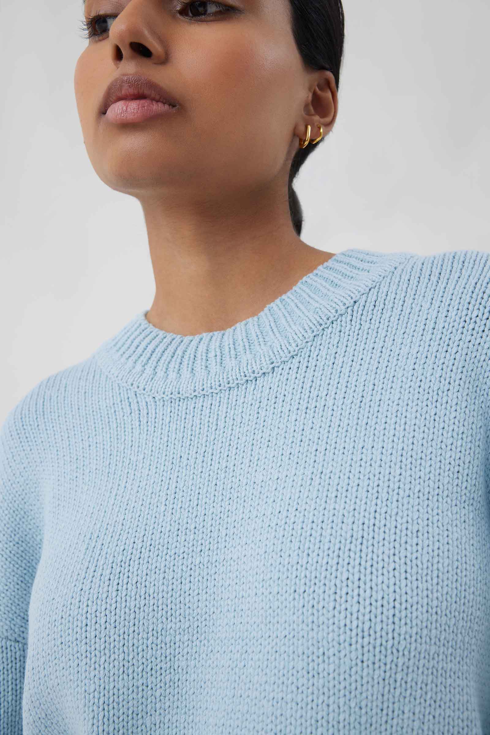 The Asher Knit is a classic crew neck jumper knitted in a mid weight chunky yarn with a dry handfeel. Silhouette is a relaxed fit sitting at the hip with a full length sleeve. Features include a textural chunky yarn knit construction, and thick rib at neckline, body hem and sleeve cuff.