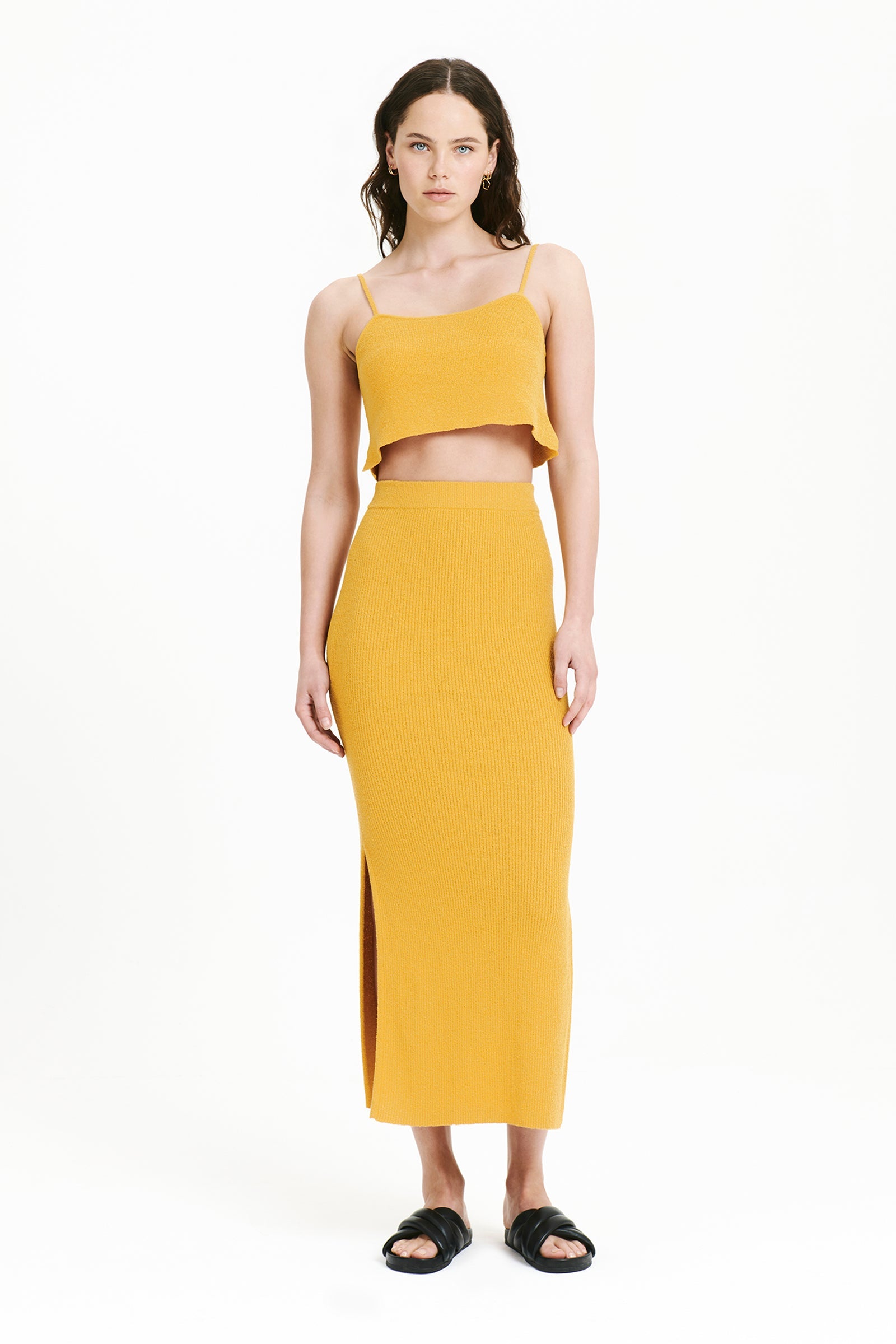The Binx Cami is cut in a lightweight, textured knit with a dry handfeel quality. The silhouette is cropped in length with a relaxed fit through the body. Features include a sqaure neckline and spaghetti straps with adjusters.