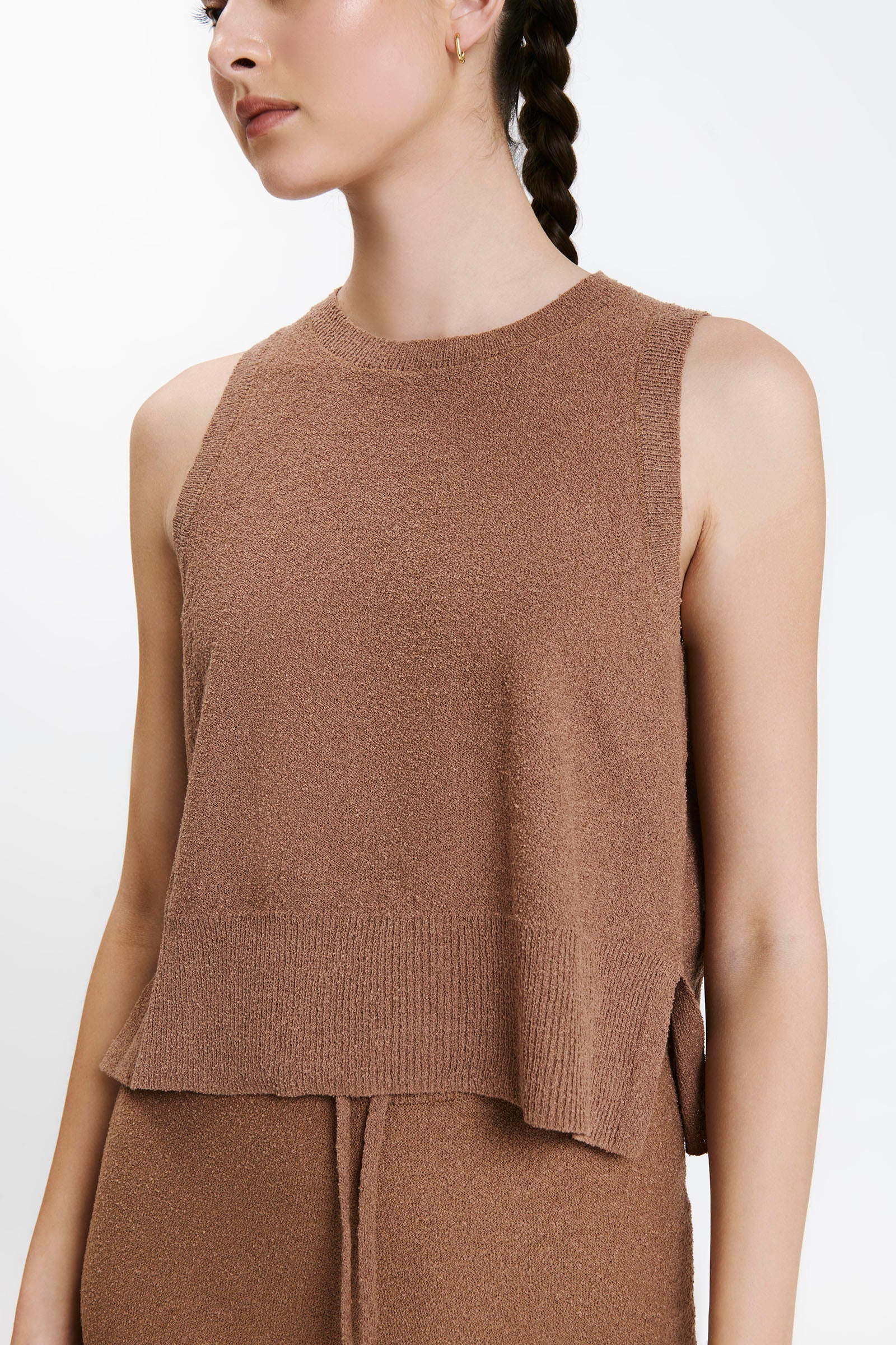 The Binx Cropped Tank is cut in a lightweight, textured knit with a dry handfeel quality.The silhouette is relaxed, finishing just above the hips. Features include an a crew neckline and a stepped hem with side seam slits. Pair with the Binx Knit Pant for a coordinating look.