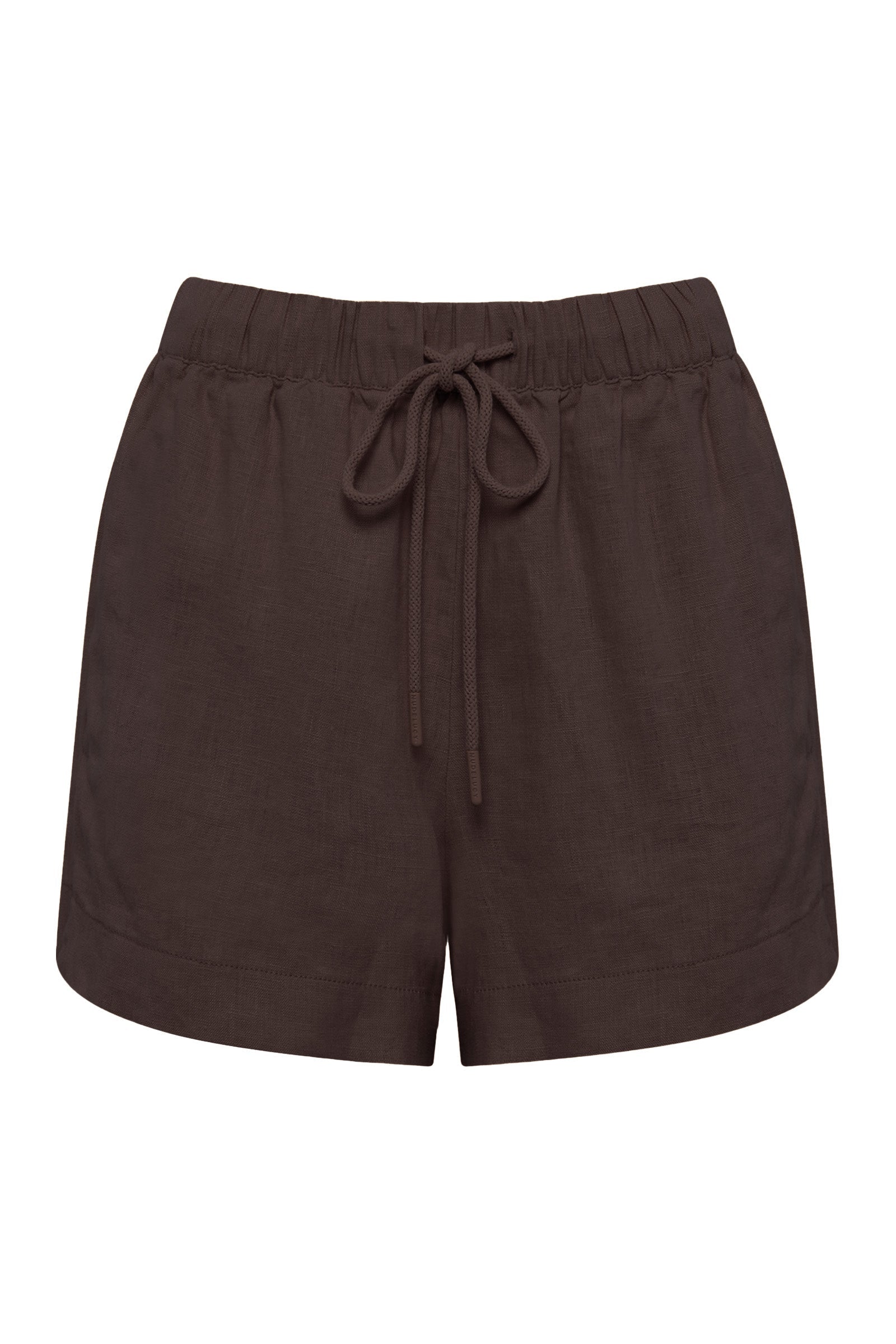 The Blake Linen Short is made from a premium linen which has been washed for a smooth, soft hand feel. The silhouette is relaxed and sits high on the waist with a wide leg opening. Features include an elasticated waistband with cotton drawcord, branded aglets, inseam pockets and splits at hem.