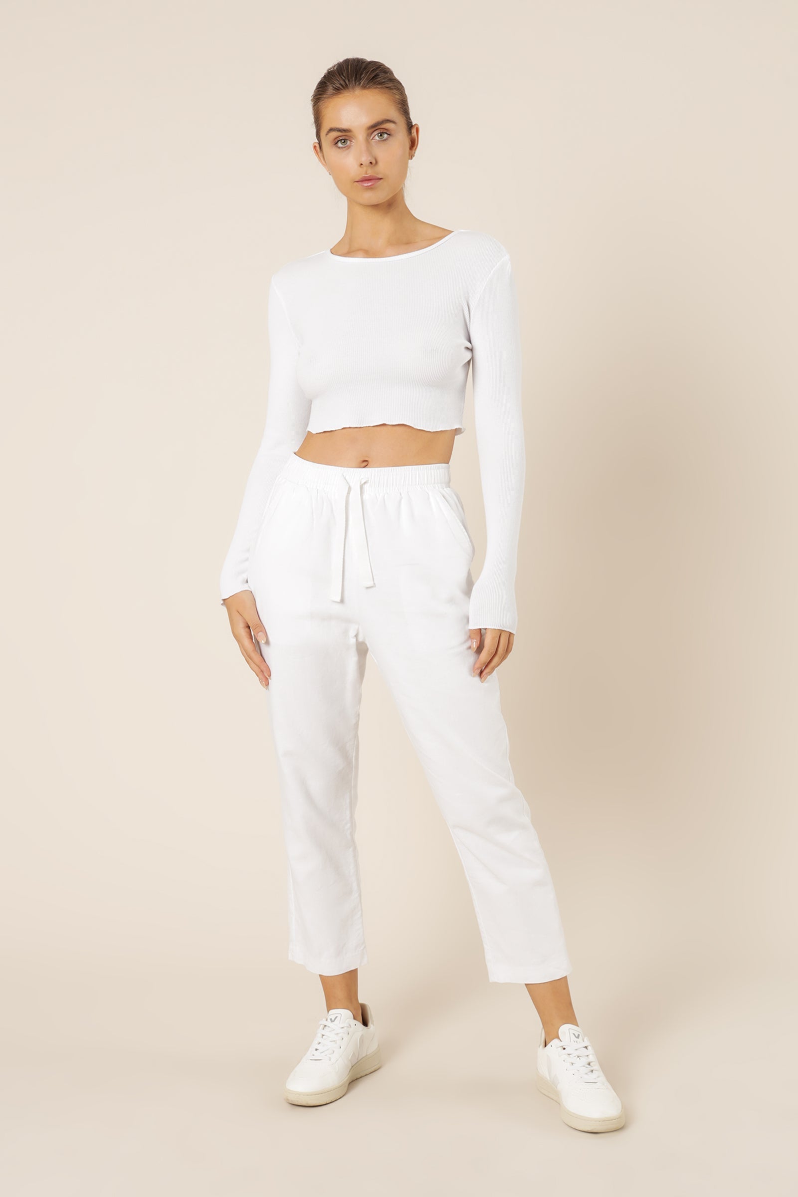 Crafted from our signature waffle stretch cotton, the Cameron Waffle Long Sleeve Tee is a comfortable cropped silhouette sitting just above the waist and fitting closely to the body with full length sleeves. Features include a subtle waffle texture, a crew neckline and babylock finish at body and sleeve hems.