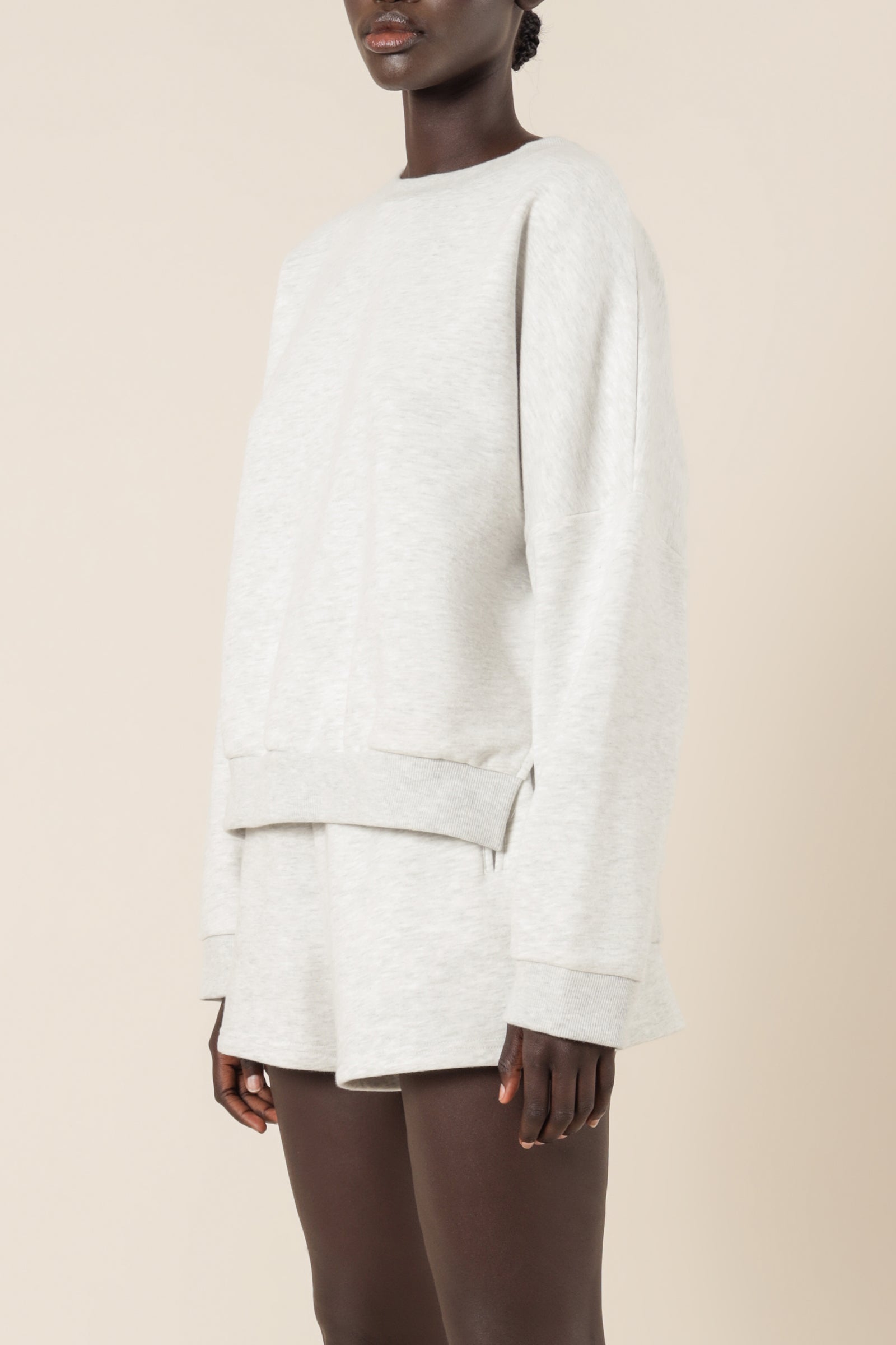 A classic shape from our permanent Carter Collection, the Oversized Sweat is crafted from our signature washed fleece with an extra soft handfeel. The silhouette is oversized with a classic crew neck, relaxed body and long sleeves. Features include a ribbed neckband and sleeve cuffs, with side slits at the hem. Pair with a Carter Short or Trackpant for a matching set.