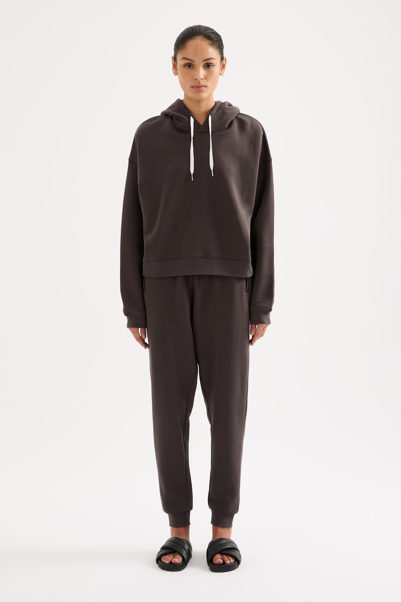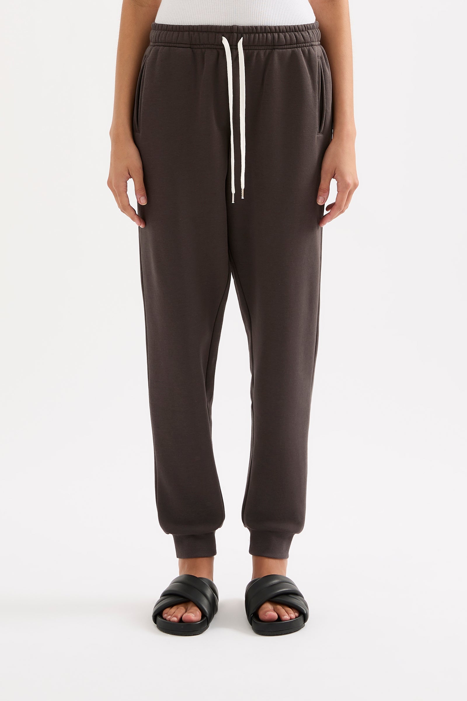 The Carter Classic Track pant is made in our signature fleece, washed down for an ultra soft hand feel. The silhouette is relaxed and high waisted with a slim leg and ribbed leg opening. Features include elasticated waistband, draw cord and side seam pockets.