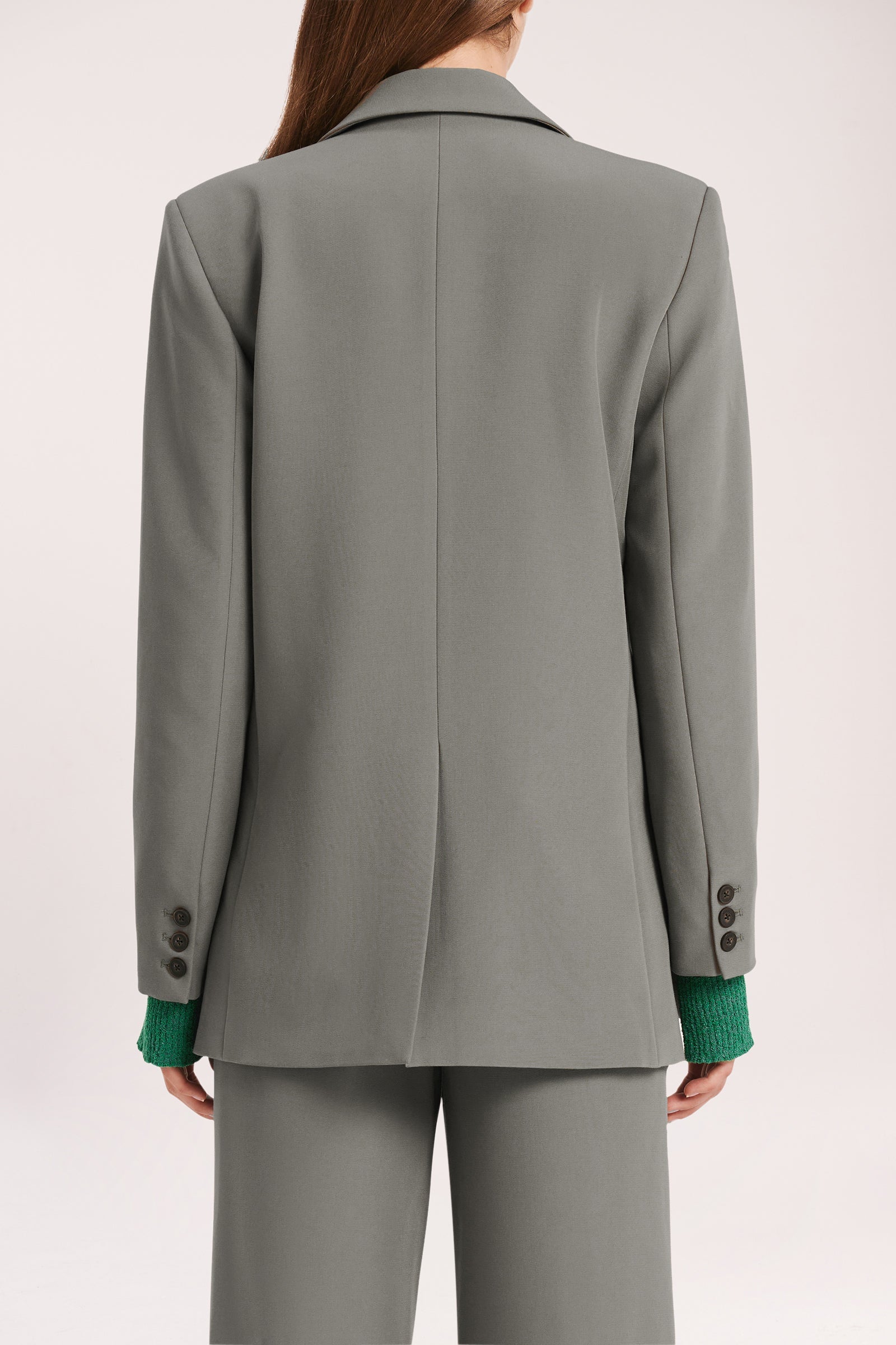 The Caspian Blazer is made from a classic suiting fabrication  with a smooth handfeel. The silhouette is a structured double breasted shape with classic sloped shoulder, relaxed to slim fit body & full length sleeve. Features include traditional tailoring detailing throughout including branded buttons, tailored vents at sleeves and back of body. Pair with the Caspian Tailored Pant for a coordinating look.