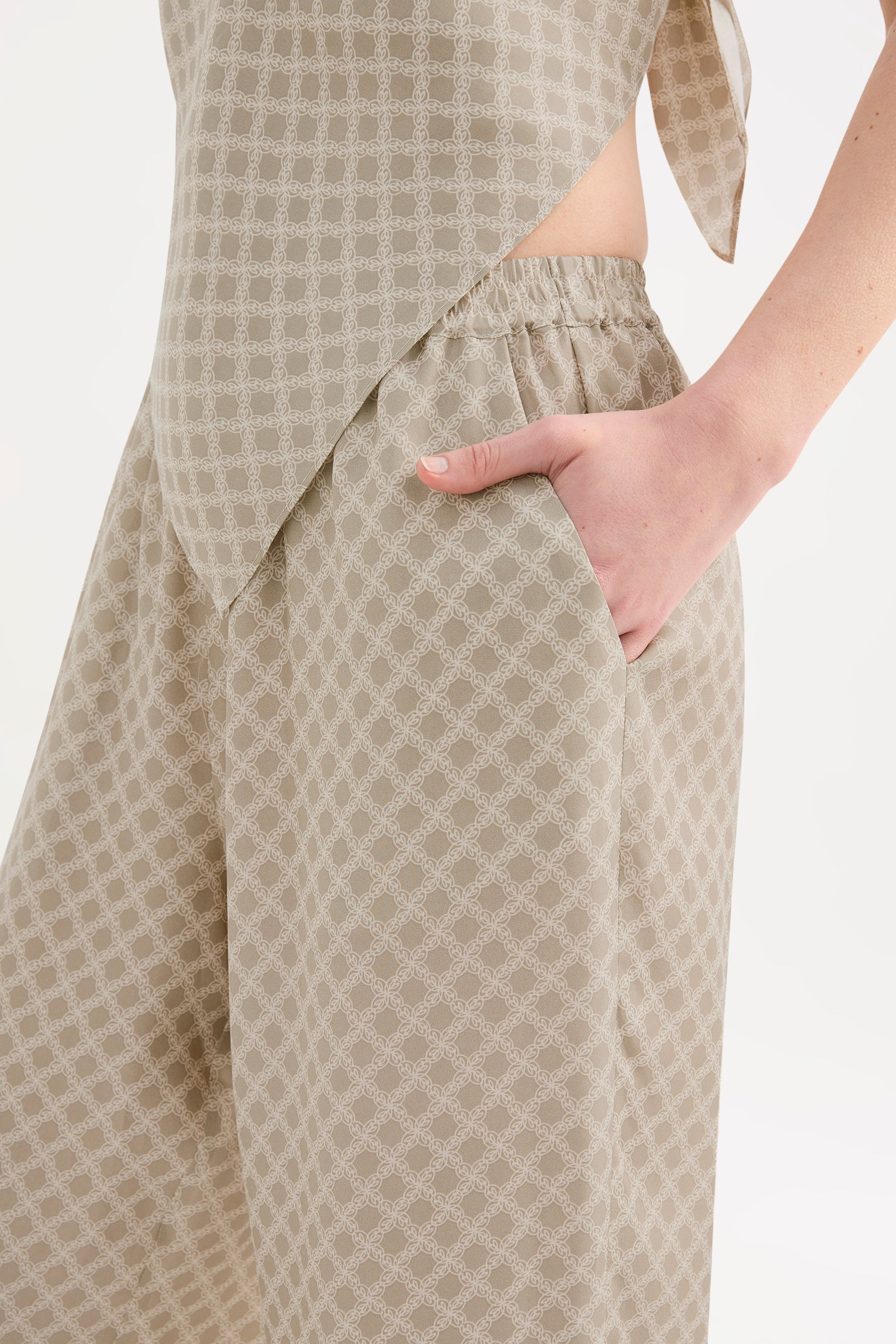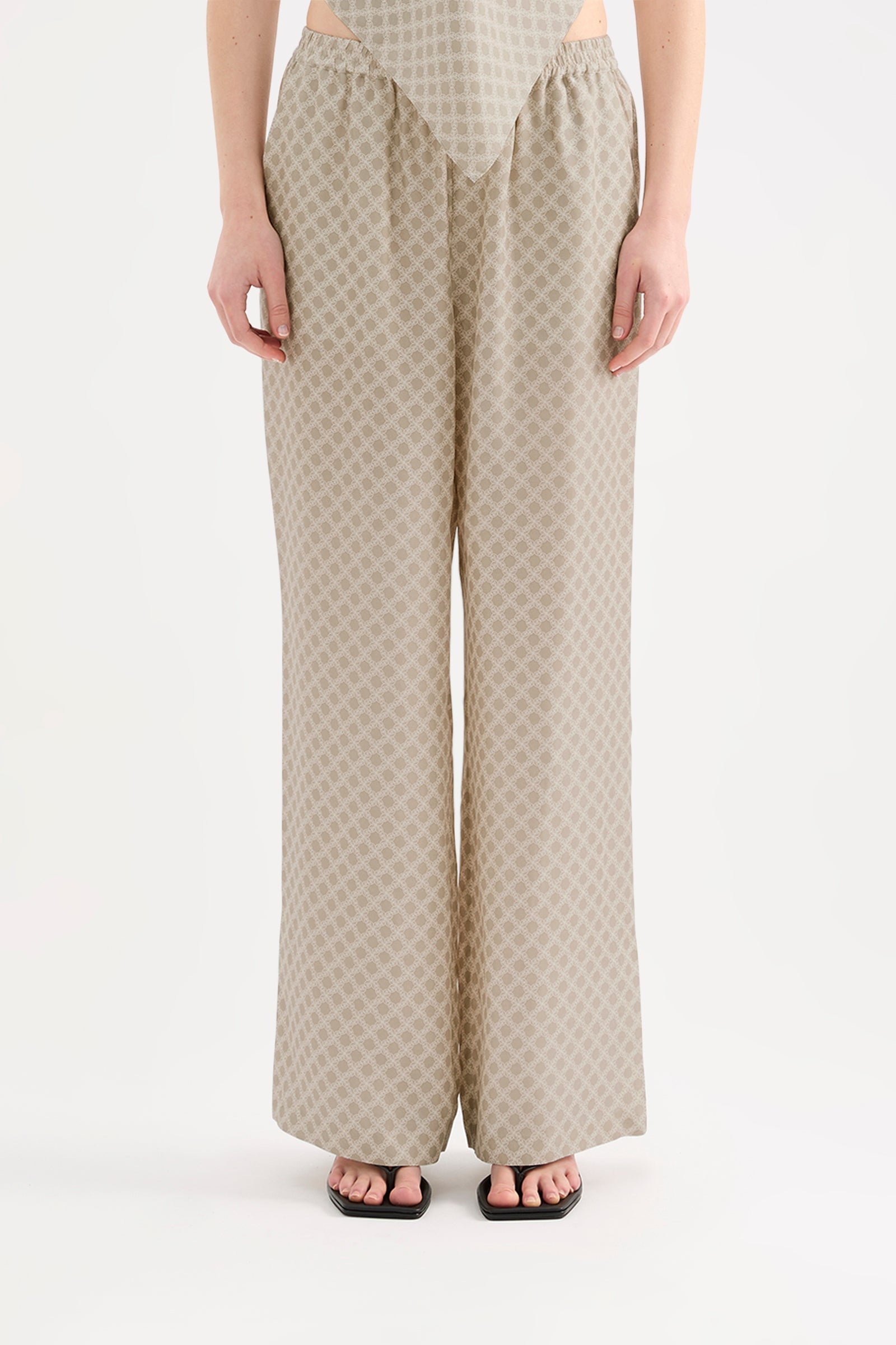 The Cosmos Cupro Pant is made in our signature cupro fabrication in our exclusive Cosmos print. The silhouette is a relaxed wide leg, full length pant. Features include an elasticated waistband, side seam pockets and slits at hem.