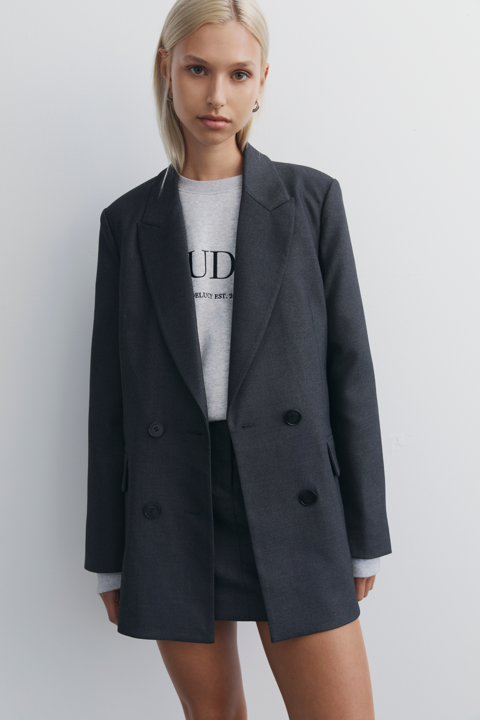 The Dakota Blazer is made from a classic suiting fabrication which has a smooth, structured hand feel. The sillouhette is a structured double breasted shape with classic sloped shoulder, relaxed to slim fit body & full length sleeve. Features include traditional tailoring detailing throughout including branded buttons, tailored vents at sleeves and back of body.