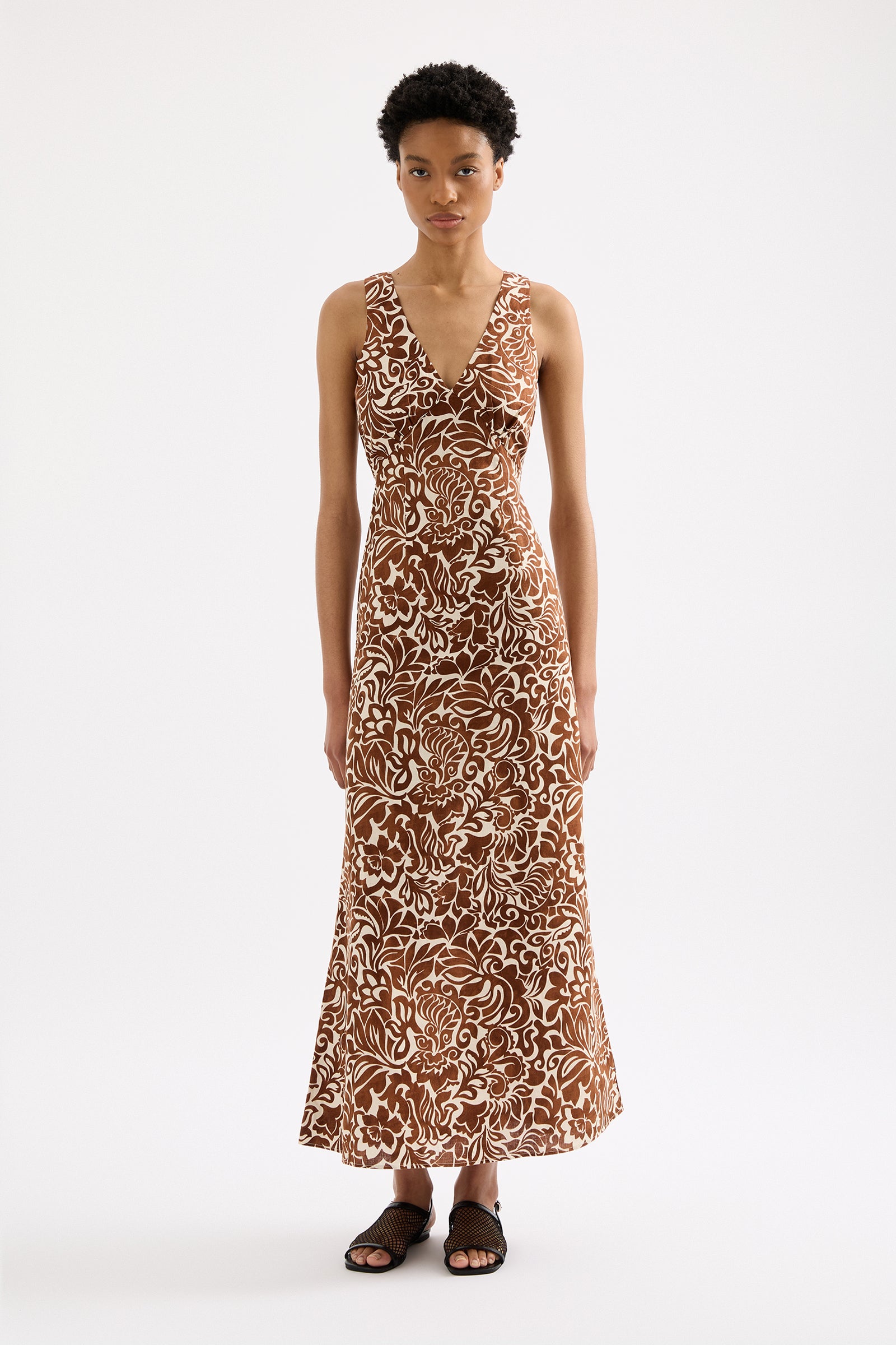 The Florense Slip Dress is made from a linen blend fabrication in our exclusive Florense print. Cut on the bias, this silhouette drapes over the body softly and finishes ankle length. Features include a v neckline with thick straps and an invisible zipper at centre back.