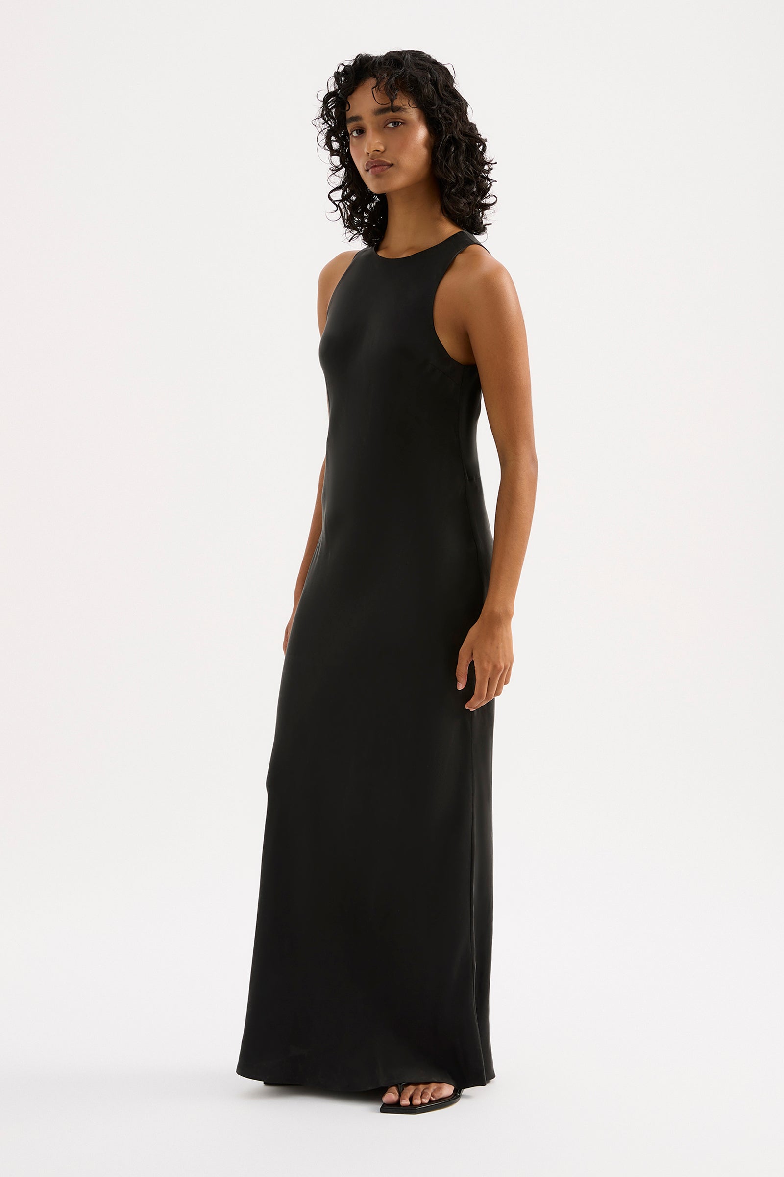 The Hariot Cupro Maxi Dress is made in our signature cupro fabrication which has a soft, sueded hand feel. Cut on the bias, this silhouette drapes over the body softly and finishes at ankle length. Features include a high neckline and keyhole back neck closure.