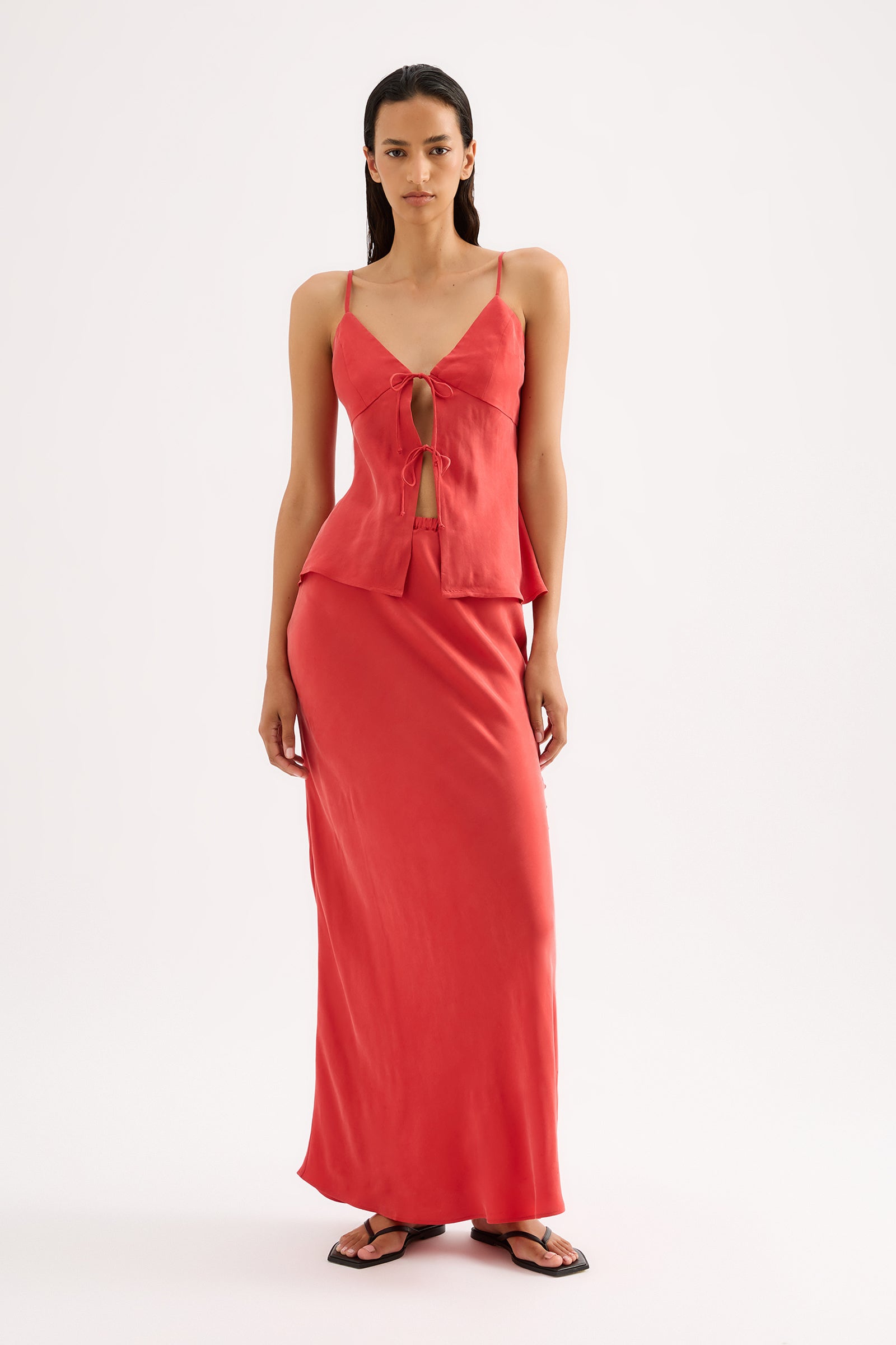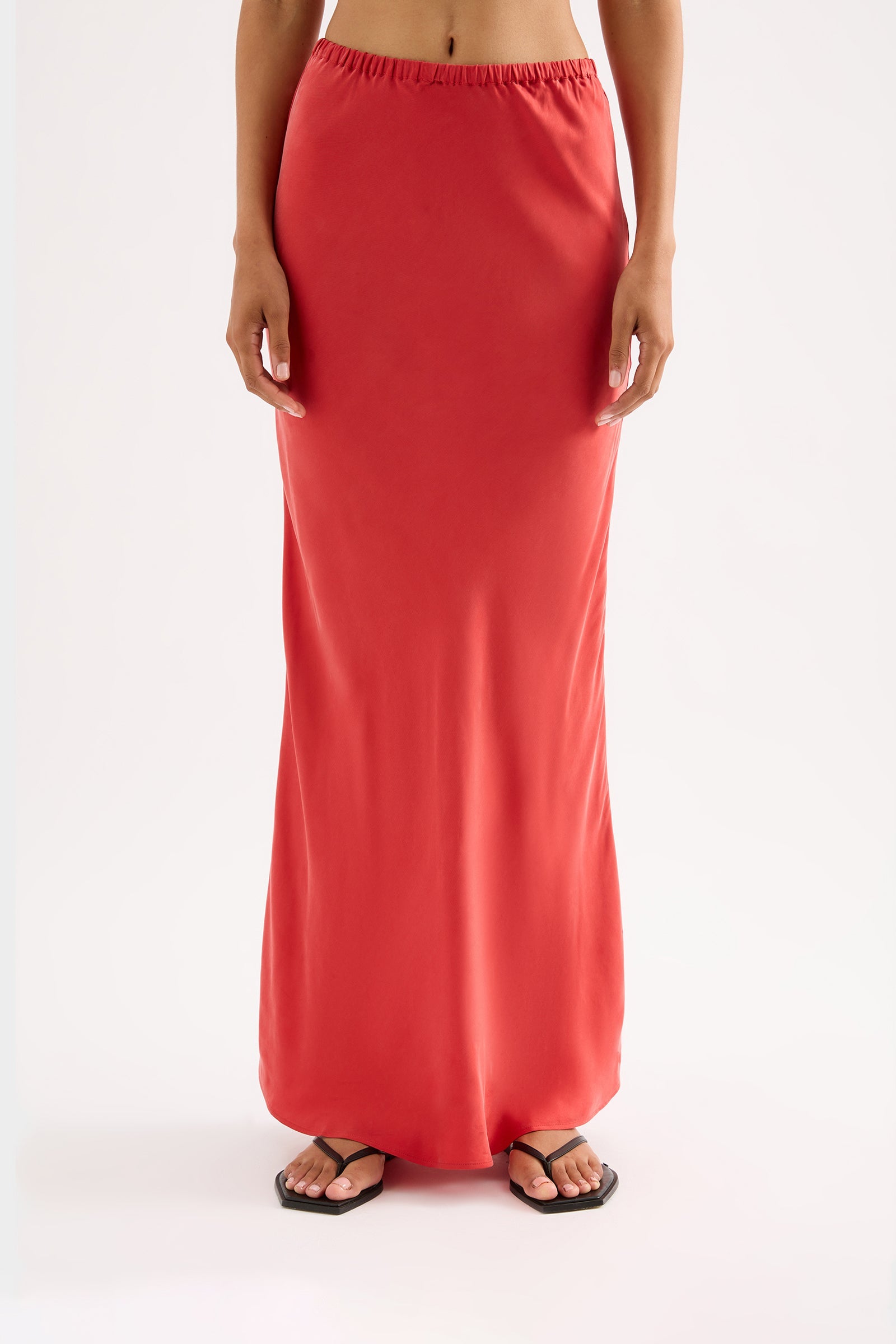 The Ines Cupro Skirt is made in our signature cupro fabrication which has a soft, sueded hand feel. Cut on the bias, this silhouette finishes at ankle length. Features include encased elasticated waistband.