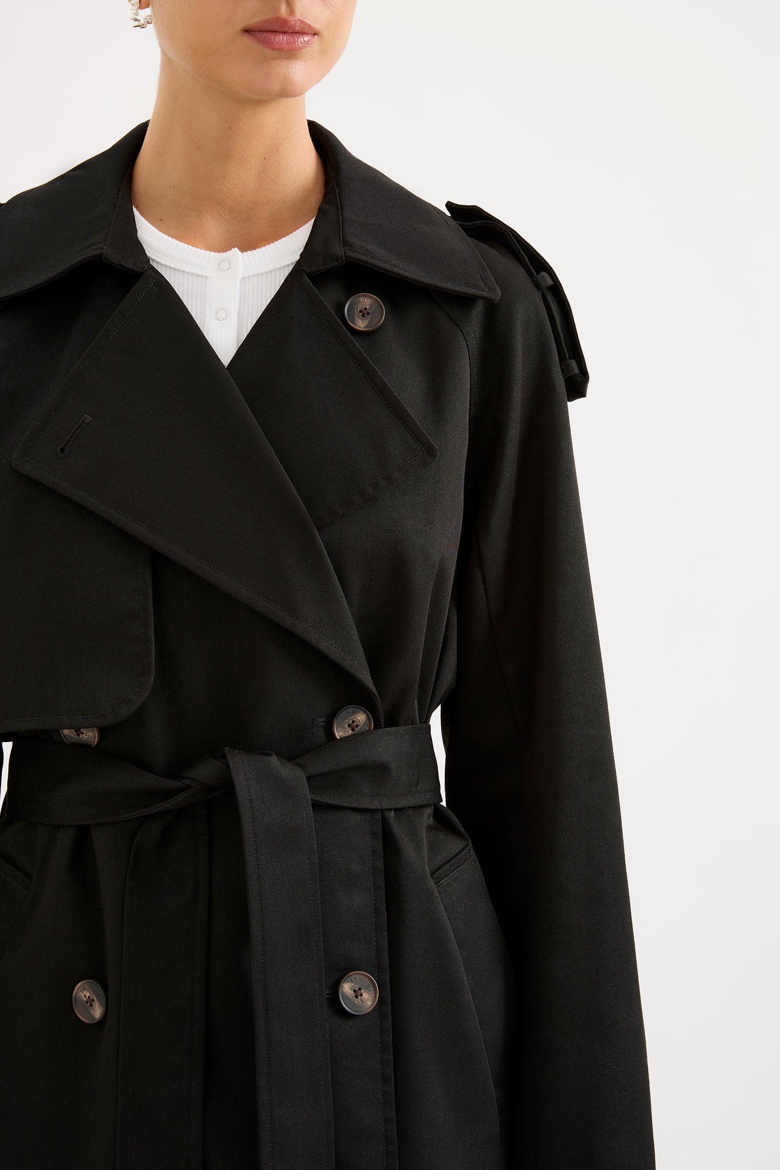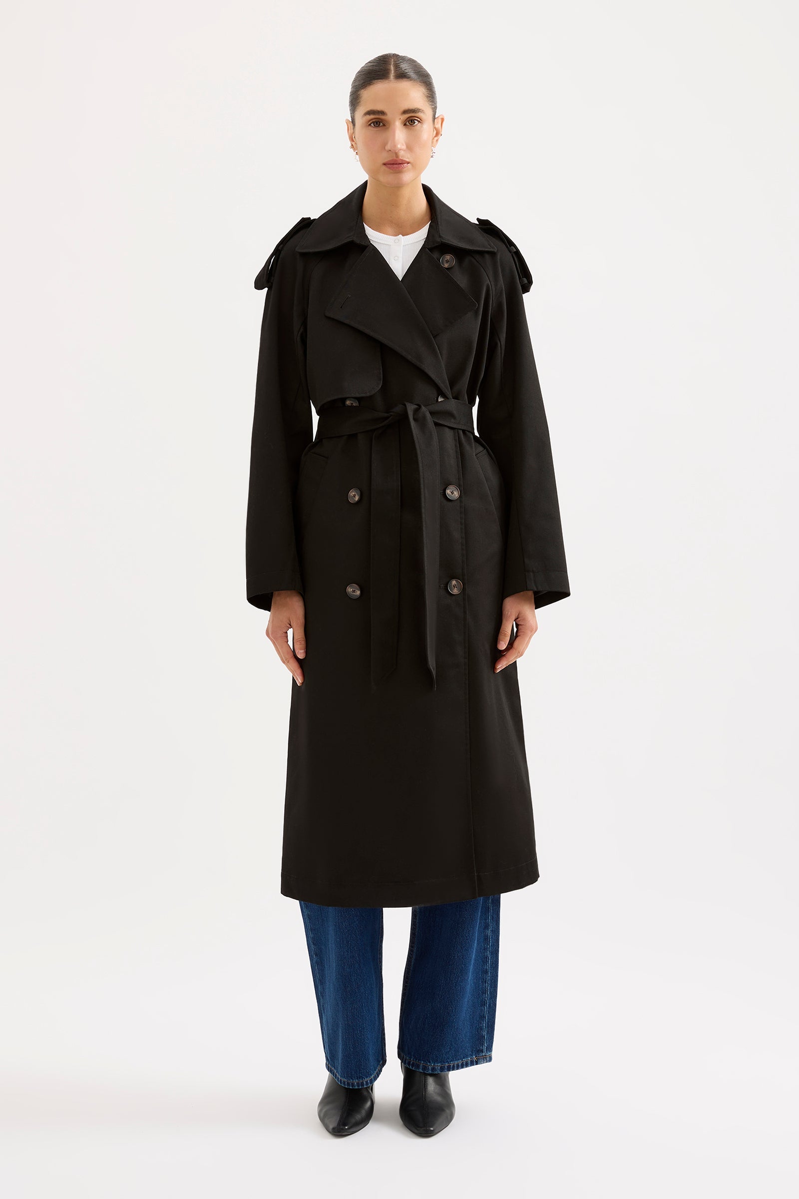 - Classic trench coat silhouette