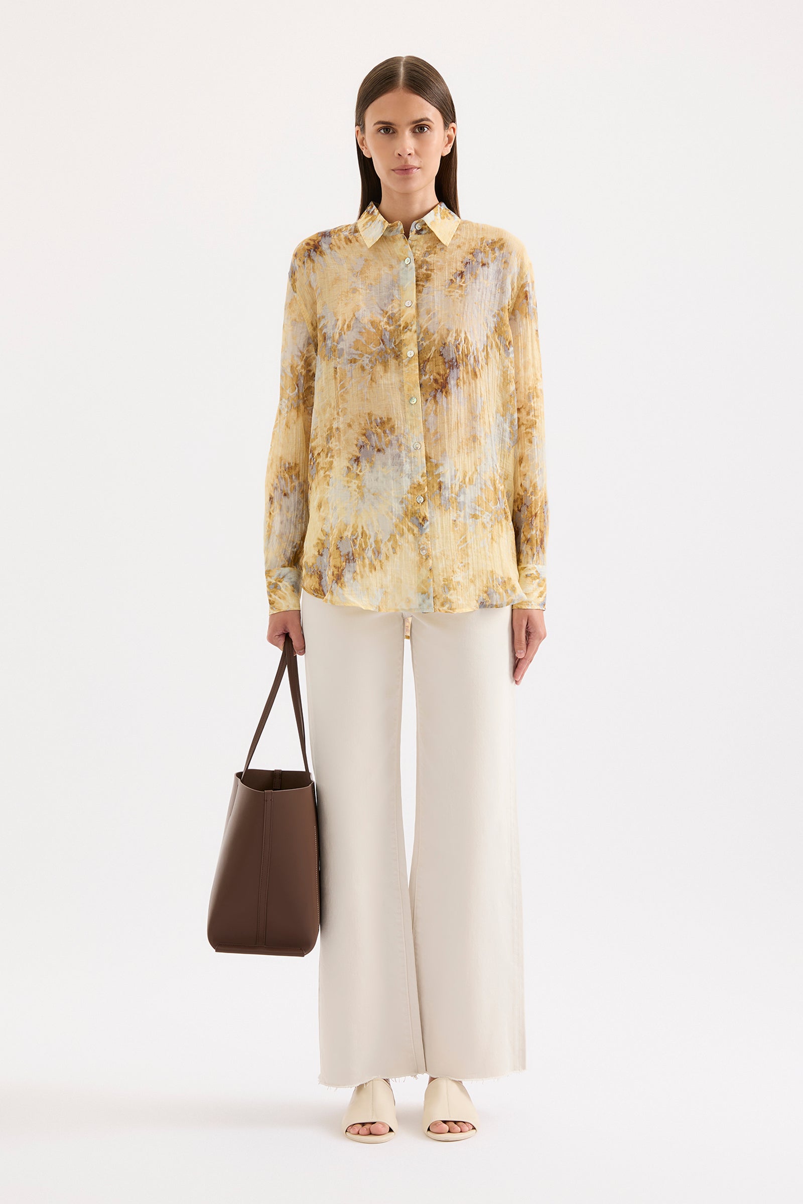 The Lumine Shirt is made from a lightweight lyocell blend fabric in our exclusive Lumine print. The silhouette is relaxed with length finishing at the hip. Features include classic shirting details with front patch pocket and shell buttons.