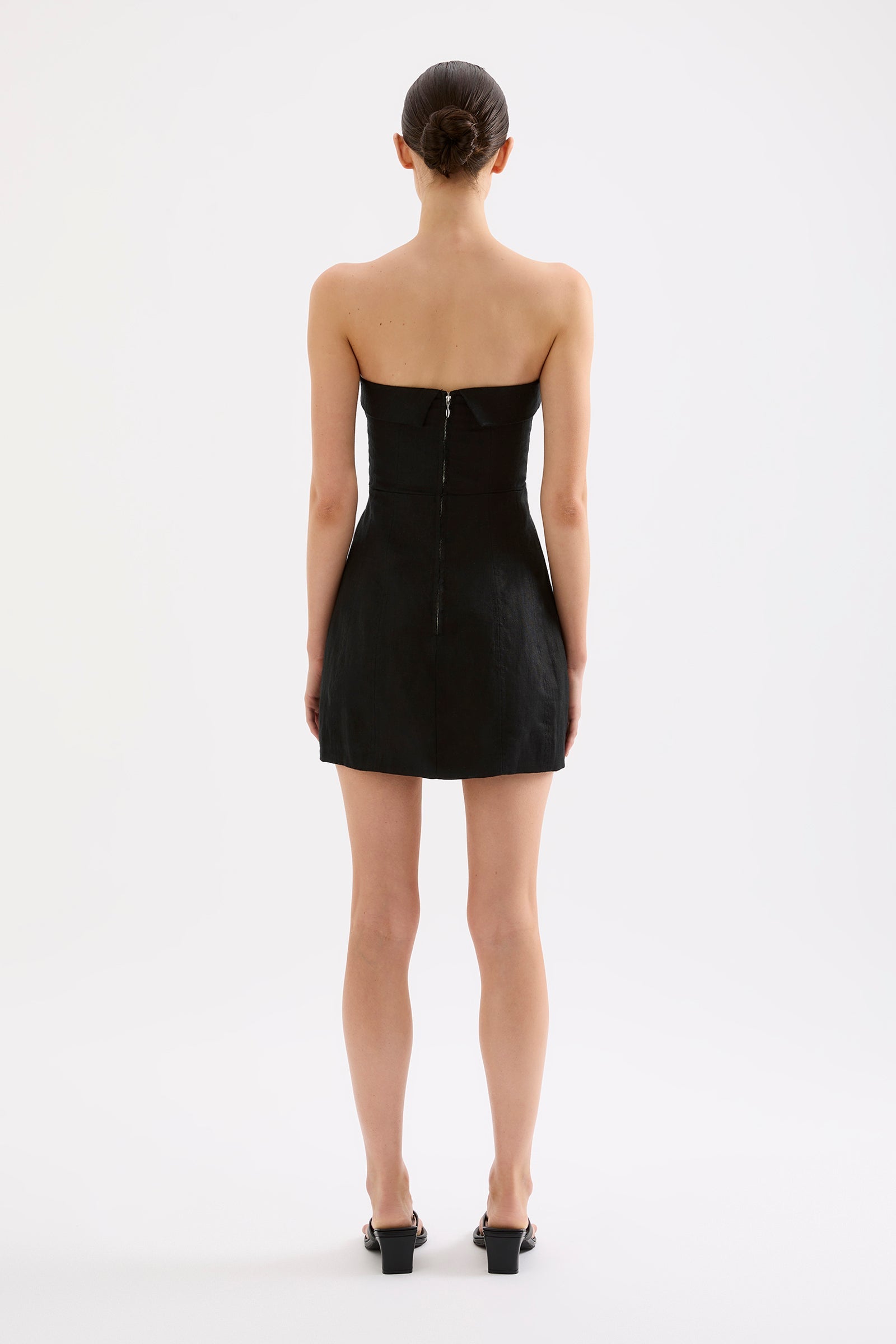 The Lyra Linen Dress in black is made from 100% linen which has been washed for a soft, breathable hand feel. The strapless silhouette is fitted at the bodice with an a line skirt that is mini in length. Features include panels to create shaping and zipper at centre back. This dress is fully lined.