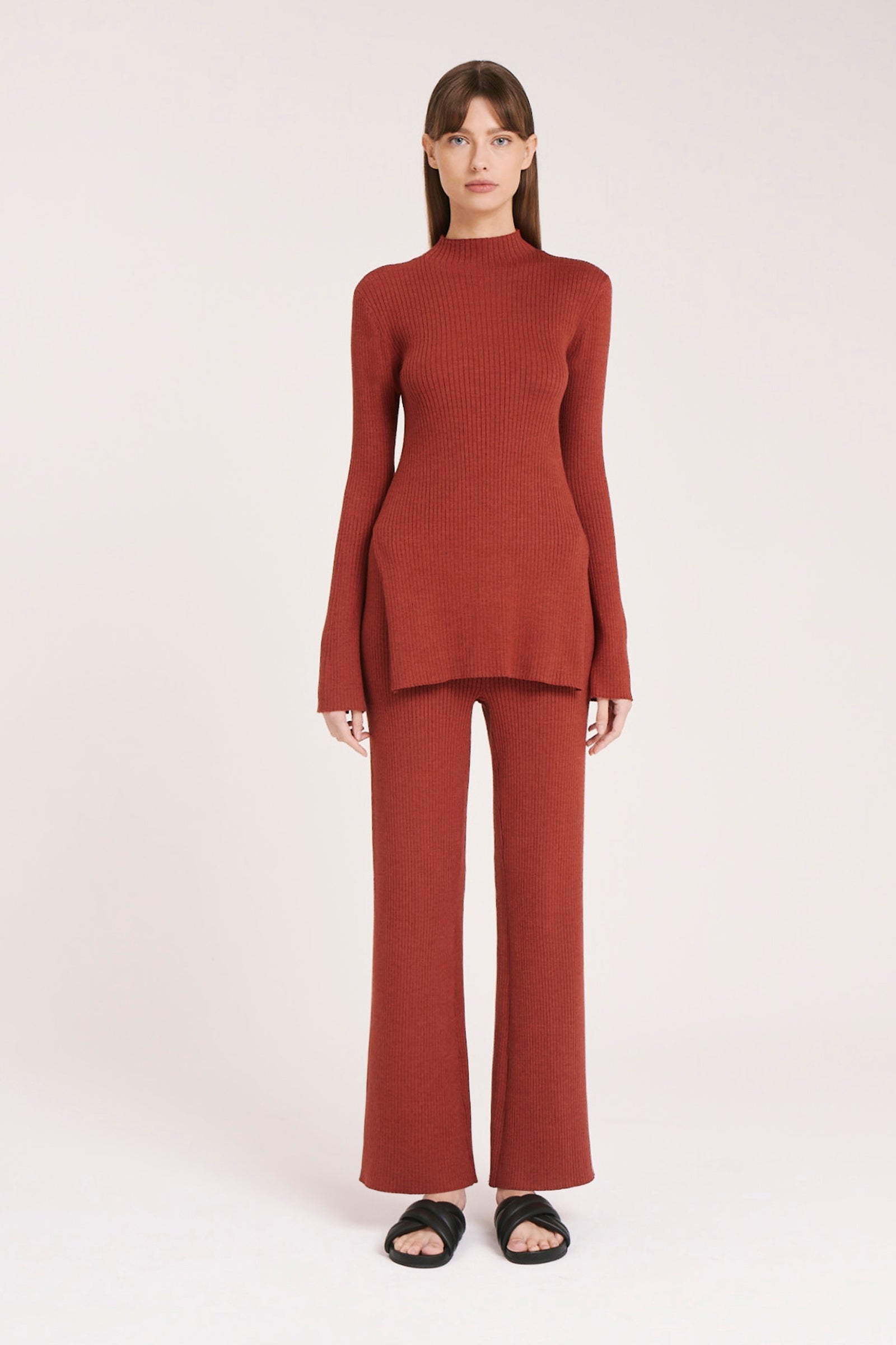 The Malo Knit Pant is made from a breathable knitted rib yarn. The length is cropped and sits above the ankle with a slight flare at leg opening. Features include an elasticated waistband and contrast trim on the hem. Pair with Malo Knit Tunic for a coordinating look.