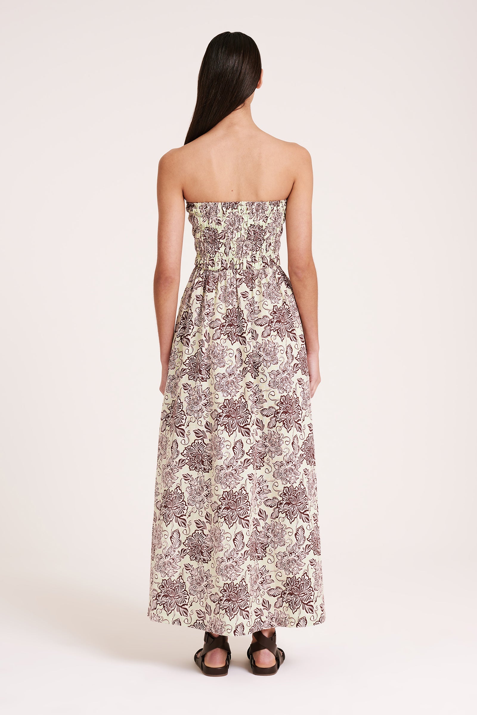 The Misi Linen Maxi Dress is made from a breathable cotton/linen blend in our exclusive Castillo print. The silhouette is feminine and relaxed with a strapless shirred elasticated bodice and soft billowing skirt that finishes just above the ankle. Features include side seam pocket and side splits at the hem.