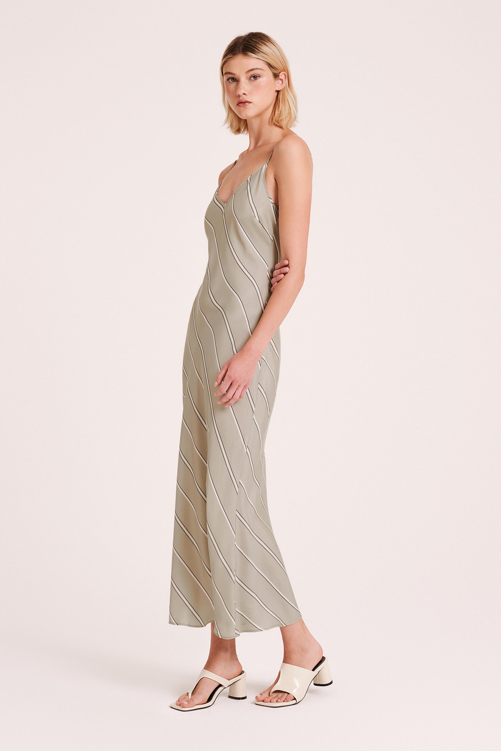 The Noosha Cupro Dress is made in our signature cupro fabrication in our exclusive Ramone print. Cut on the bias, this silhouette drapes over the body softly and finishes above the ankles. Features include a scoop neckline and thin adjustable straps.