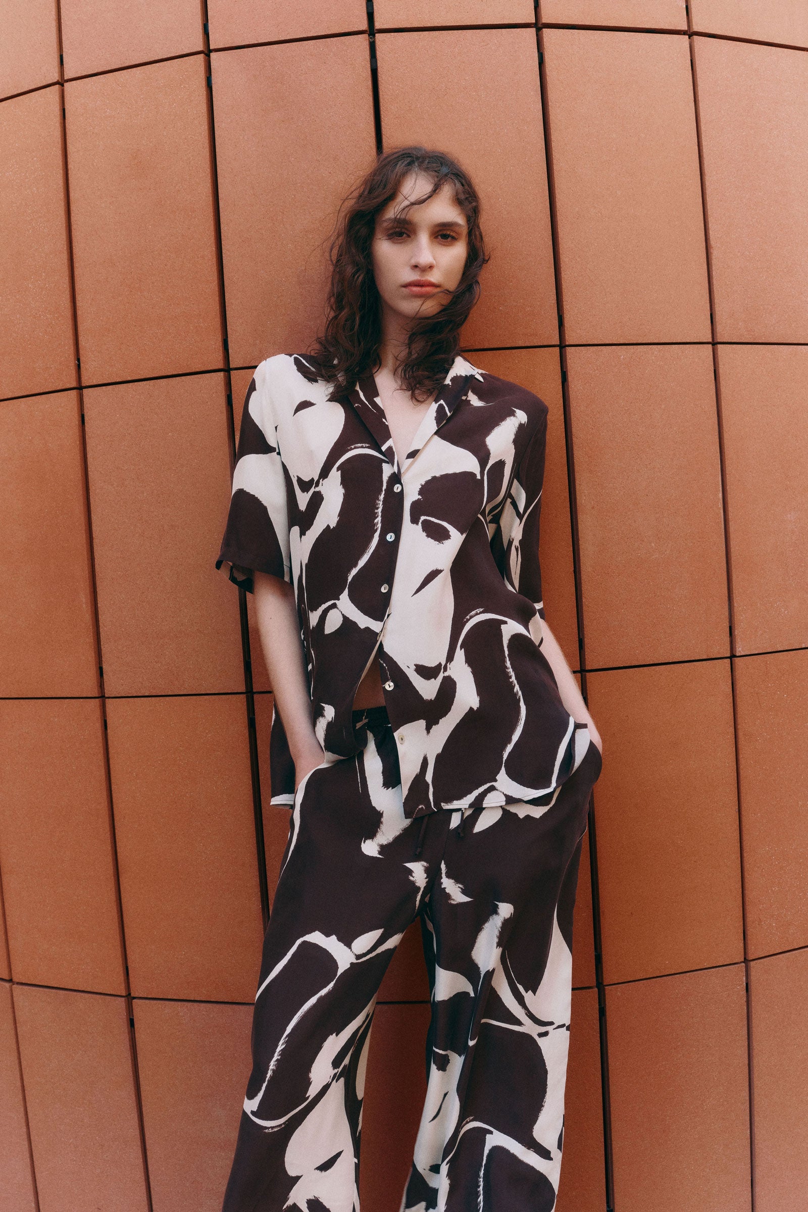 The Ombra Cupro Pant is made in our signature cupro fabrication in our exclusive Ombra print. The silhouette is a relaxed wide leg, full length pant. Features include an elasticated waistband with drawcord and side seam pockets.