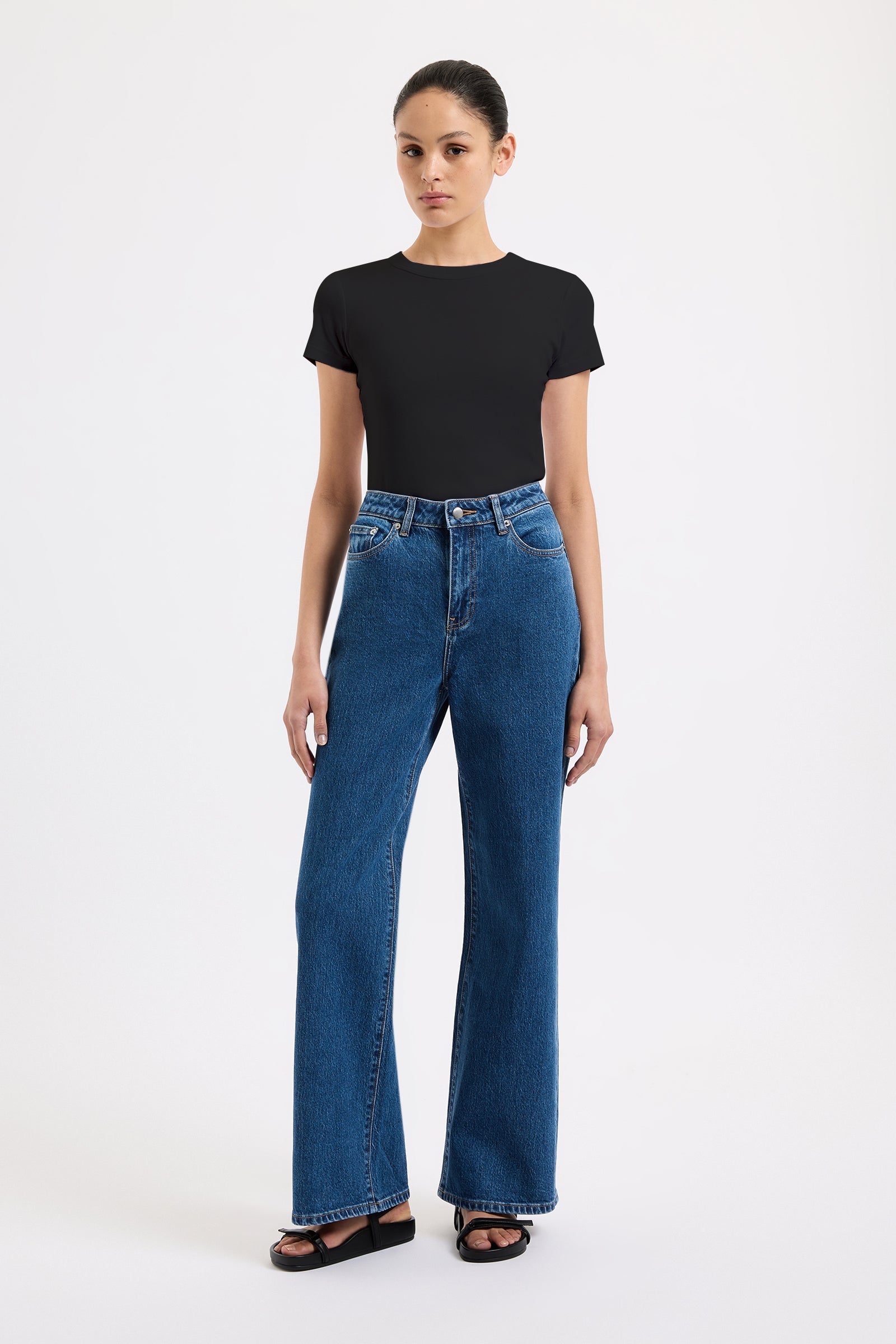 The Organic Baby Tee is made from a lightweight organic cotton jersey, which has a soft, breathable hand feel. The silhouette is a flattering close fit and finishes at the hips. Features include a crew neck, and short, fitted sleeves. This can be tucked in or worn over midrise bottoms.