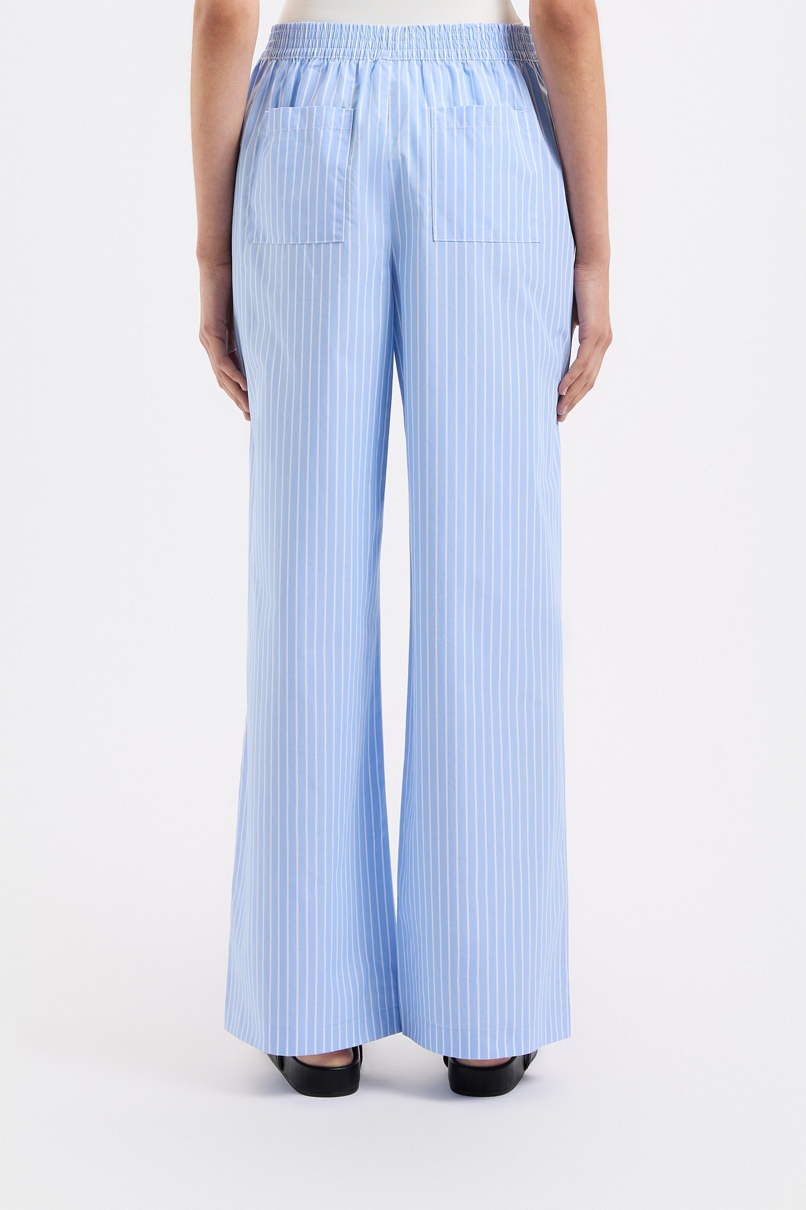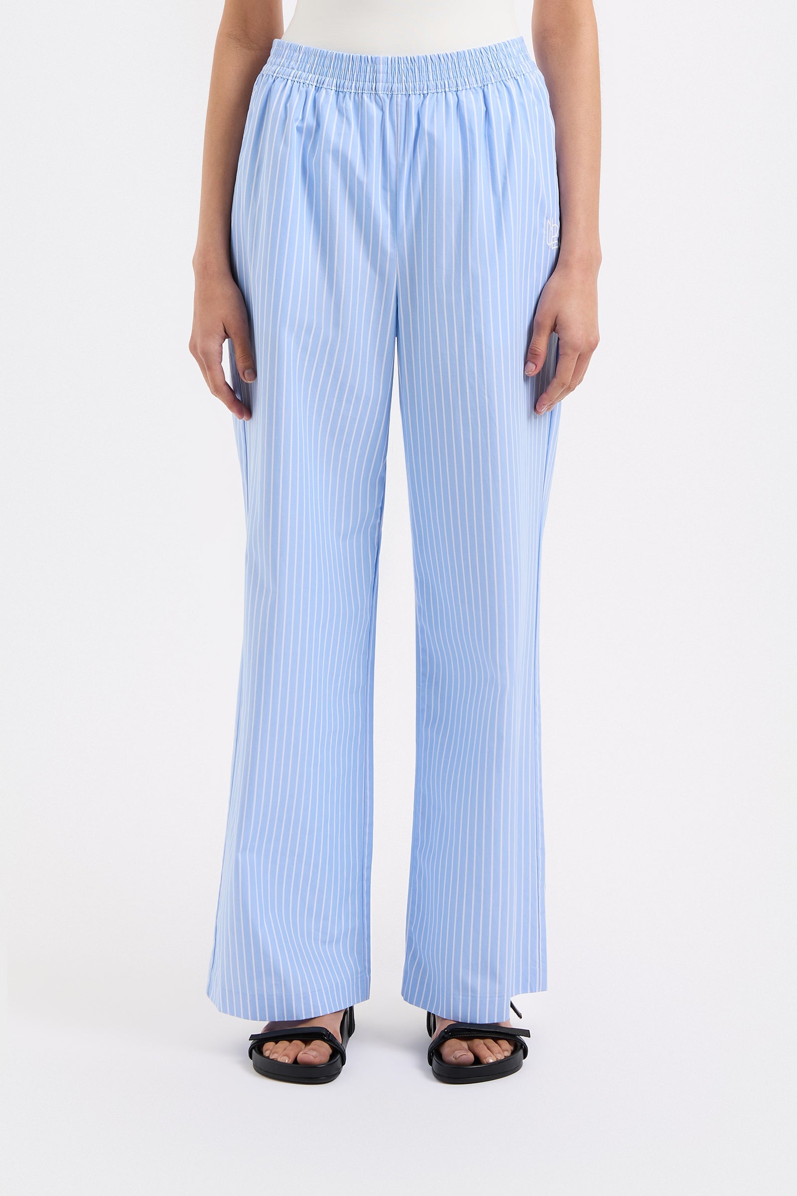 The Organic Poplin Pant is made from a organic cotton poplin which has be washed for a smooth, crisp hand feel. The silhouette is a relaxed high to mid rise with a straight full leg length. Features include elasticated waistband, Nude emblem logo and side seam pockets.