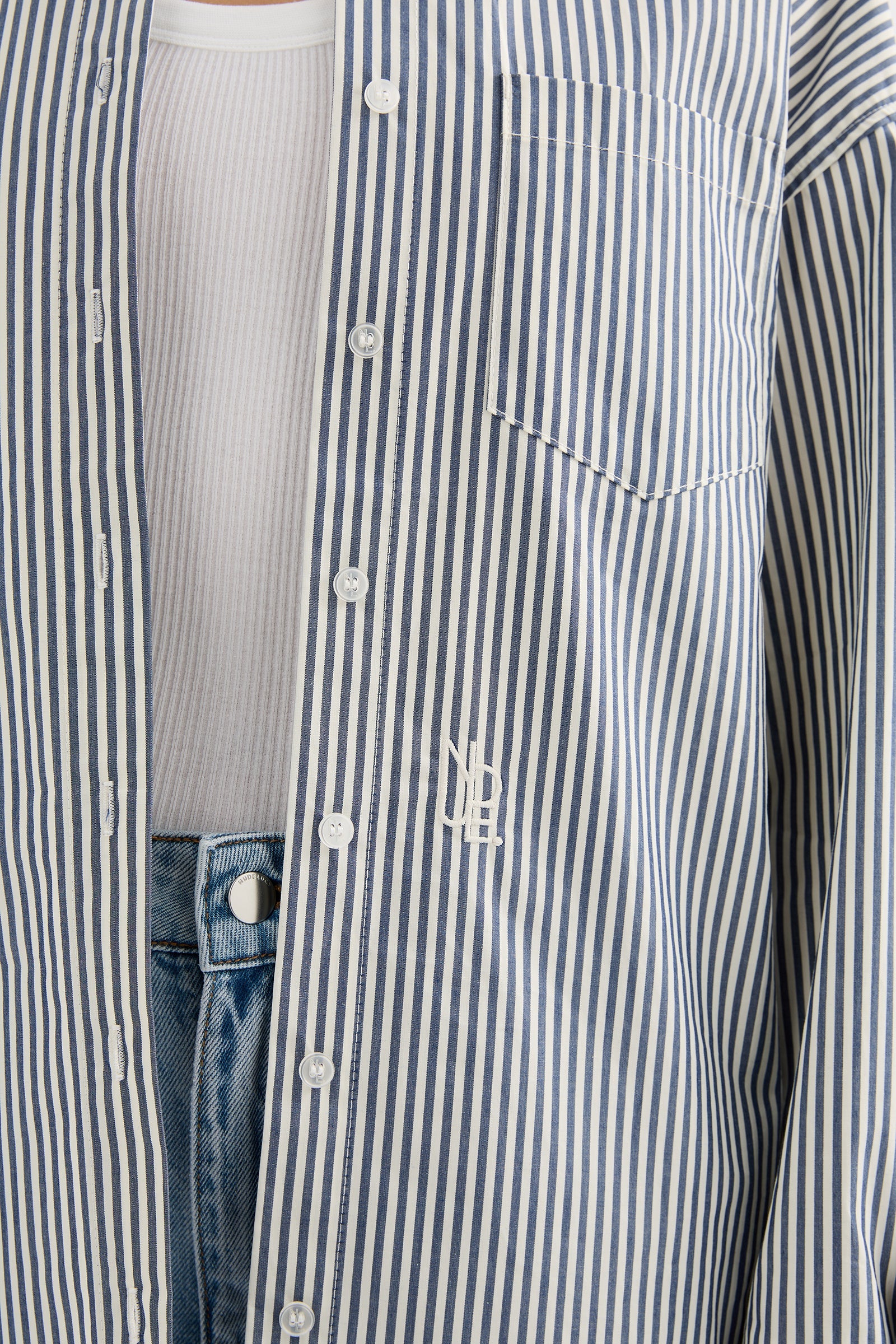 The Organic Poplin Shirt is made from a organic cotton poplin which has be washed for a smooth, crisp hand feel.  The silhouette is oversized throughout with length finishing on the hips. Features include front patch pockets, a large cuff and Nude Lucy branded buttons.