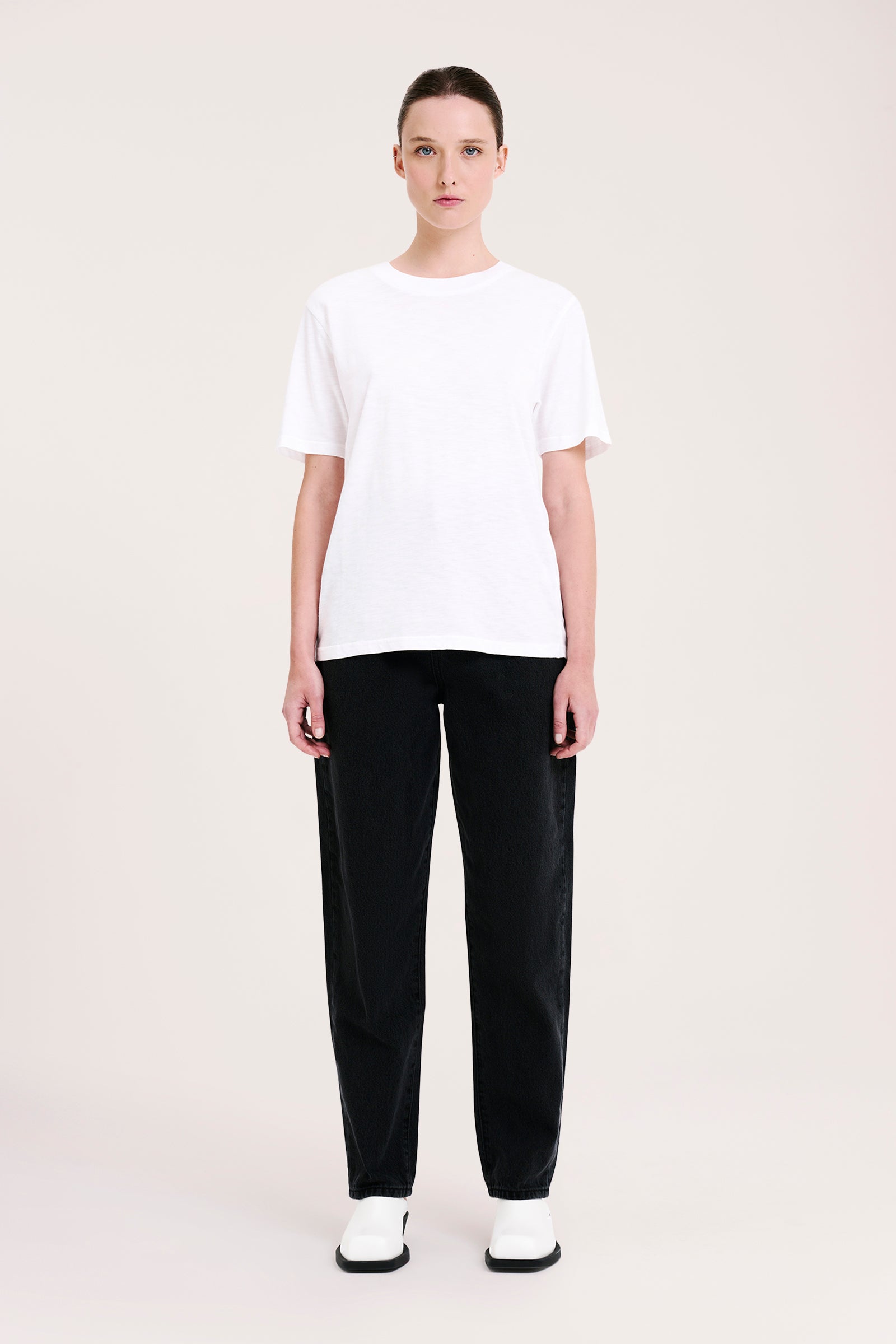 The Organic Slub Tee by Nude Lucy is a key piece to add to your basic wardrobe range. Made in organic cotton it is lighter weight than our other t-shirts to give a draped silhouette. Features include a crew neck, short sleeves and length finishing at the hip. Try styling with our Nude Denim for a timeless fit.