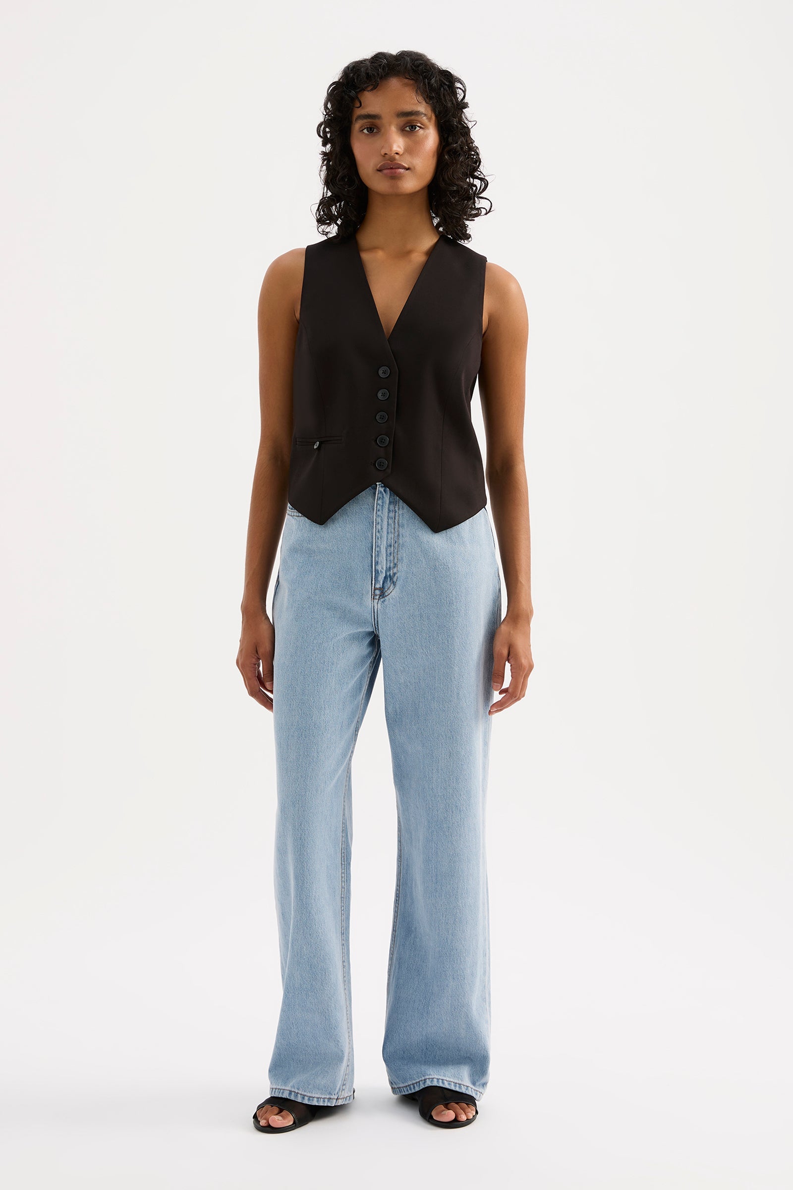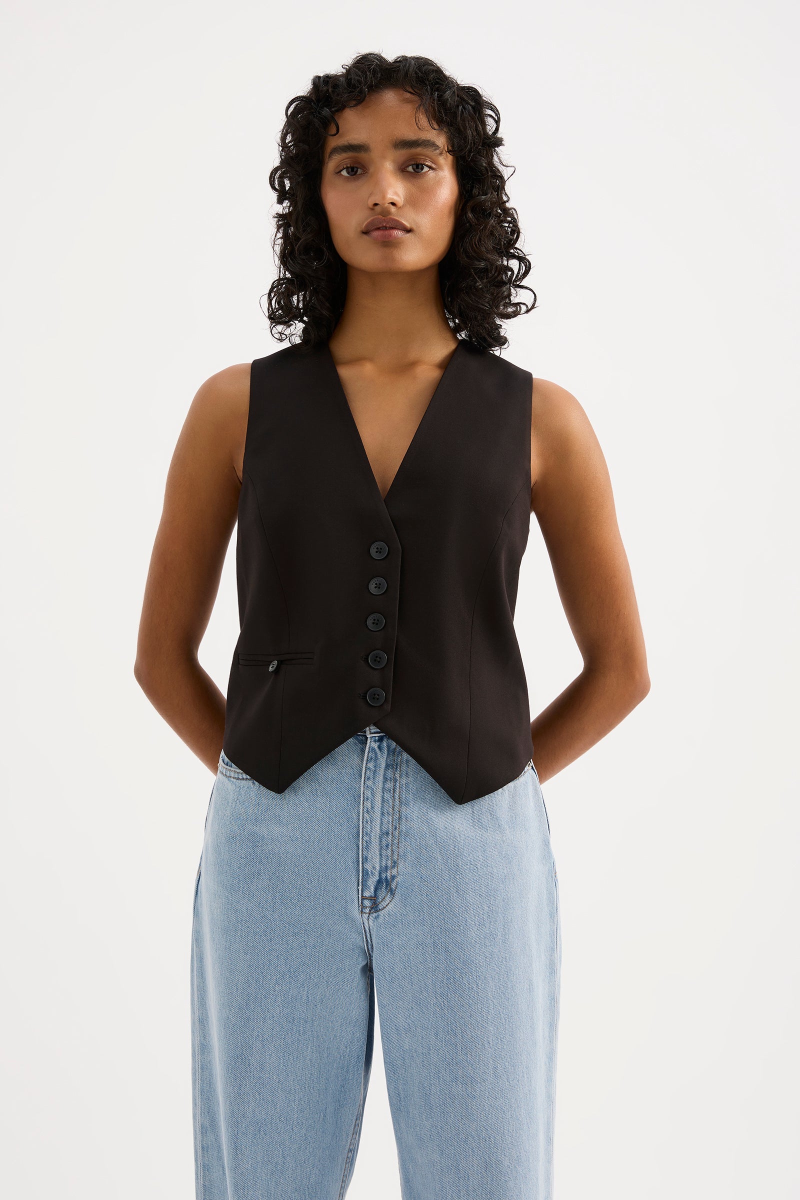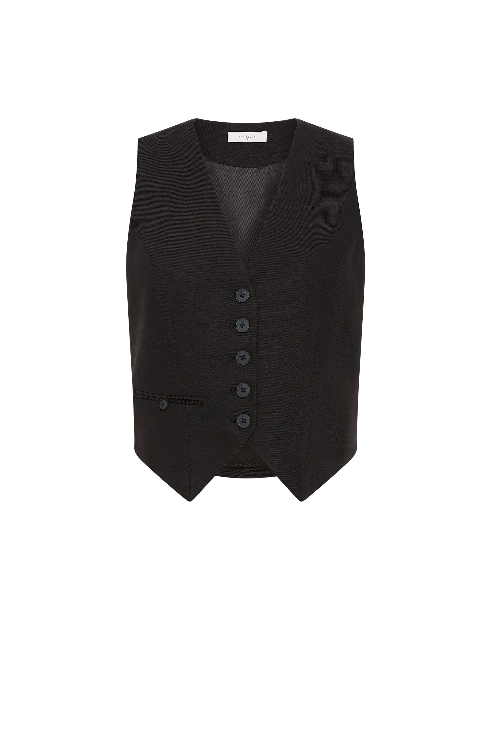 The Orla Vest is made from a classic wool blend suiting fabrication with a smooth hand feel. The silhouette is tailored and slim fitting with a button front opening. Features include a v neck, jetted pocket , branded buttons and adjustable back ties. The Orla Vest is fully lined.