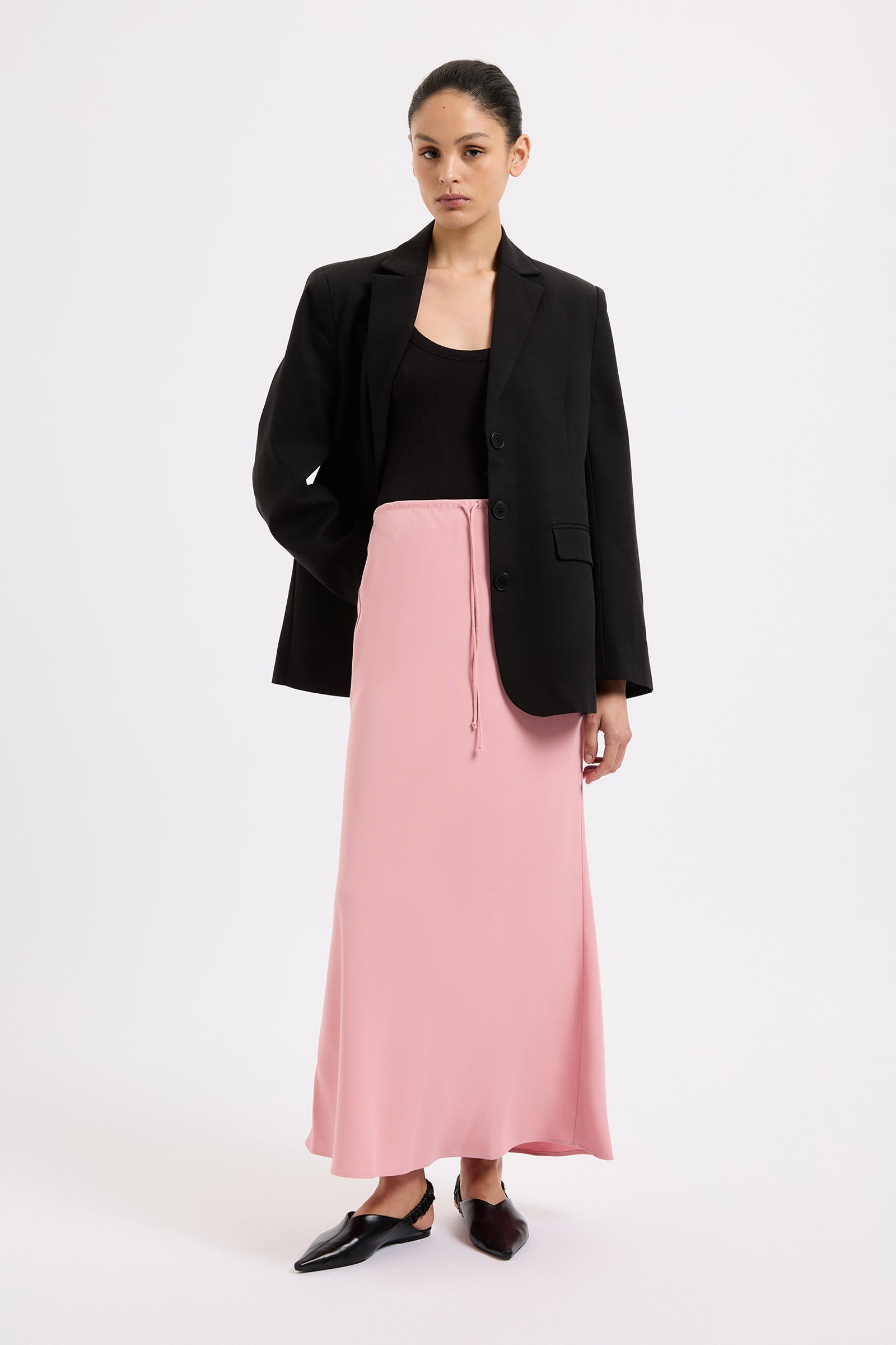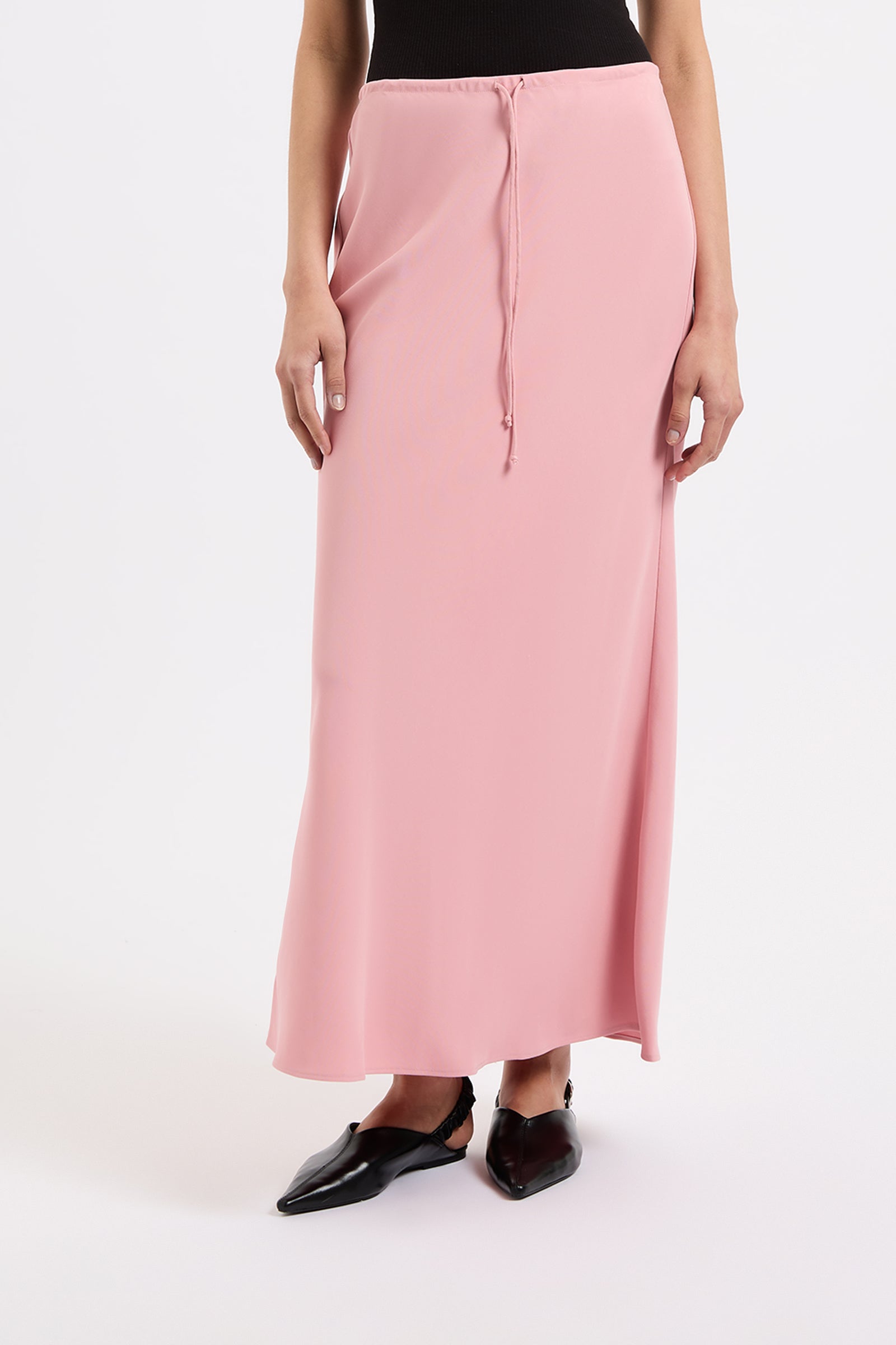 The Petra Skirt is made in a lightweight rayon fabrication that has a twill texture and soft hand feel. Cut on the bias, this silhouette finishes just above the ankles. Features include encased elasticated waistband with a self cut draw string at centre front.