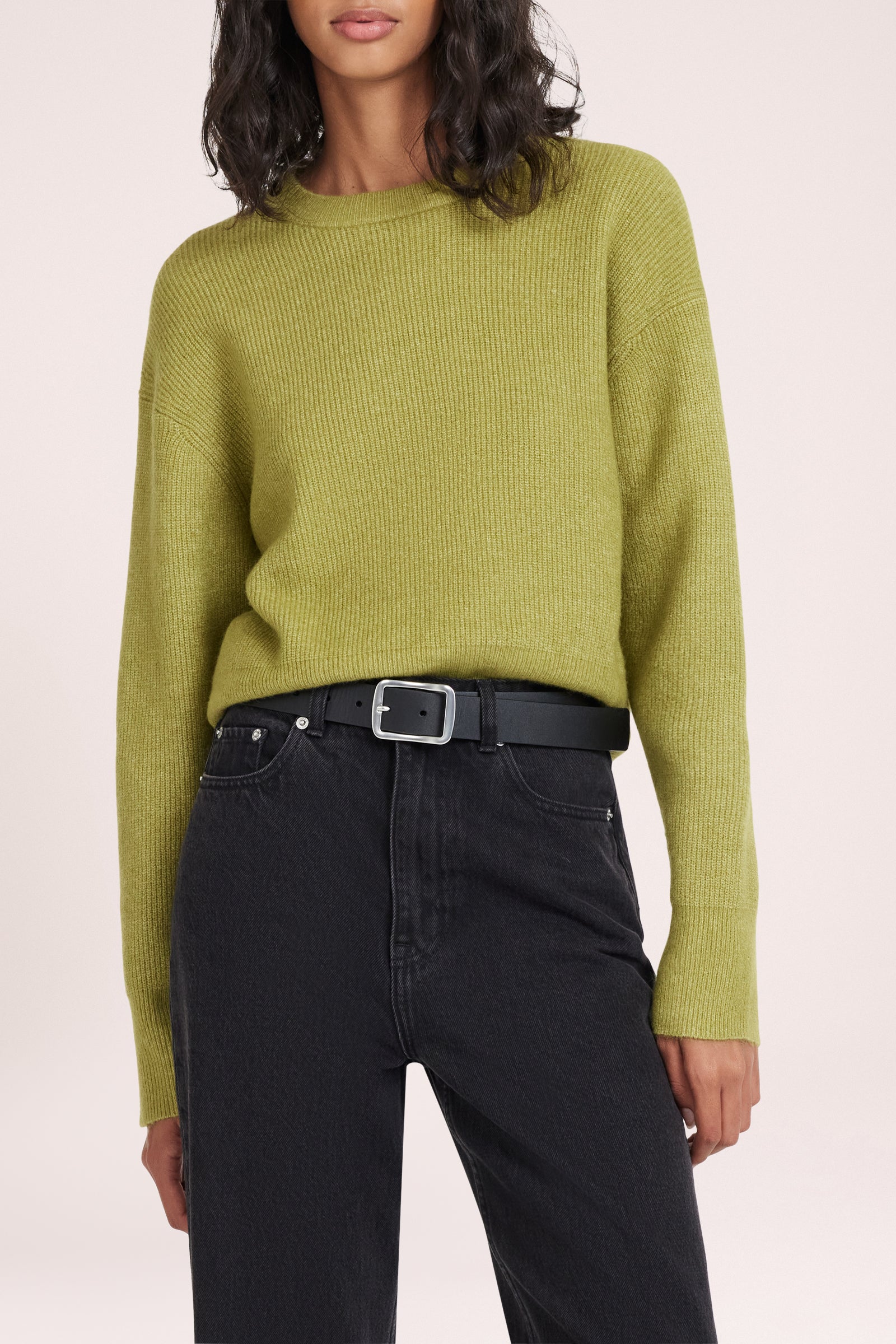 The Prado Knit is made from a soft midweight yarn with subtle fluffy texture. The silhouette is relaxed with drop shoulder and long sleeves. Features include a crew neckline and rib at neckline, hem and sleeve cuff.