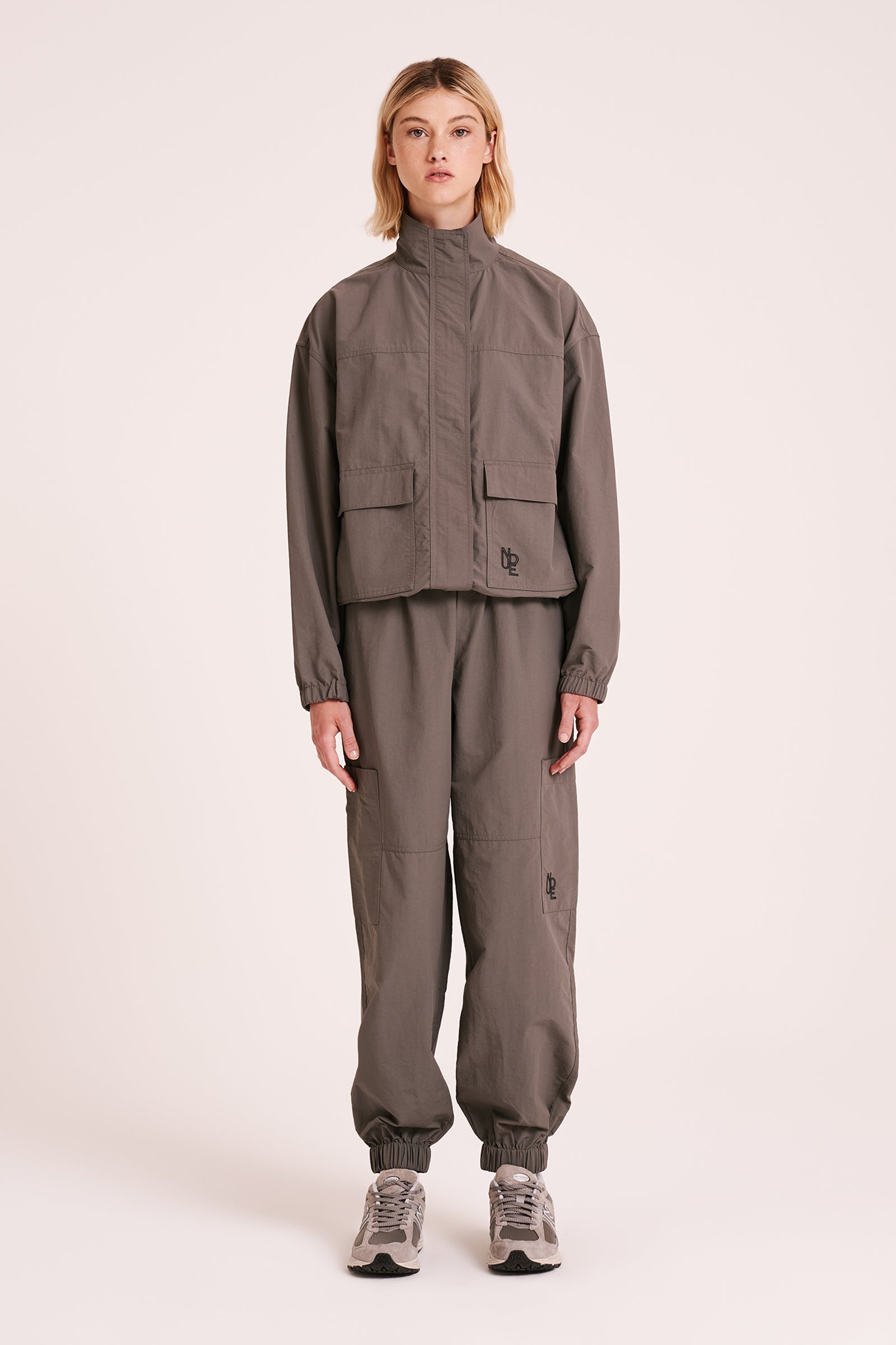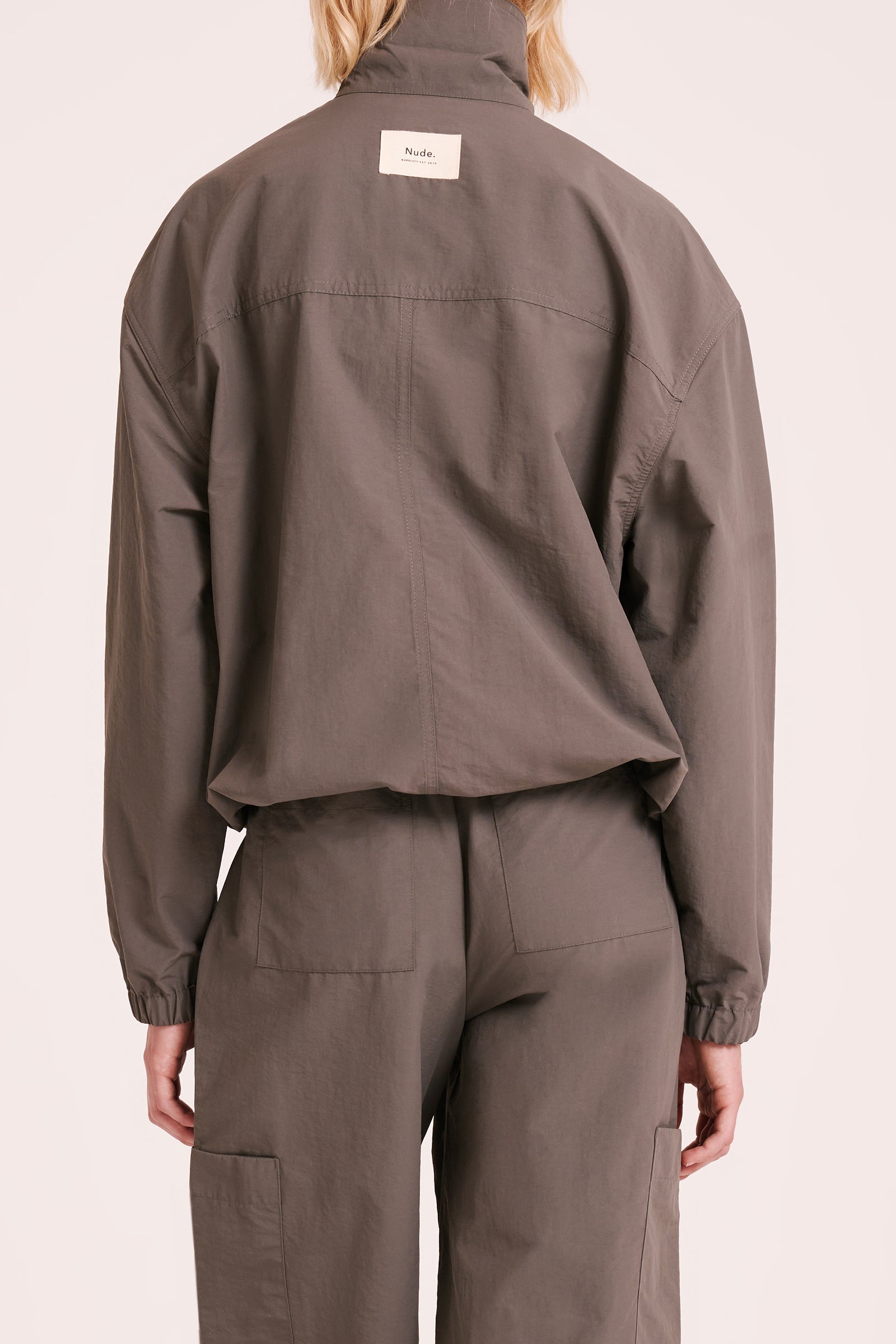 The Presley Jacket is made from a sturdy nylon fabric which has a crisp hand feel. The silhouette is relaxed with an internal elastic cord on the hem to adjust to crop length or sit on the hips. Features include a front patch pockets, centre front zipper, Nude embroidered logo and elasticated sleeve cuffs.