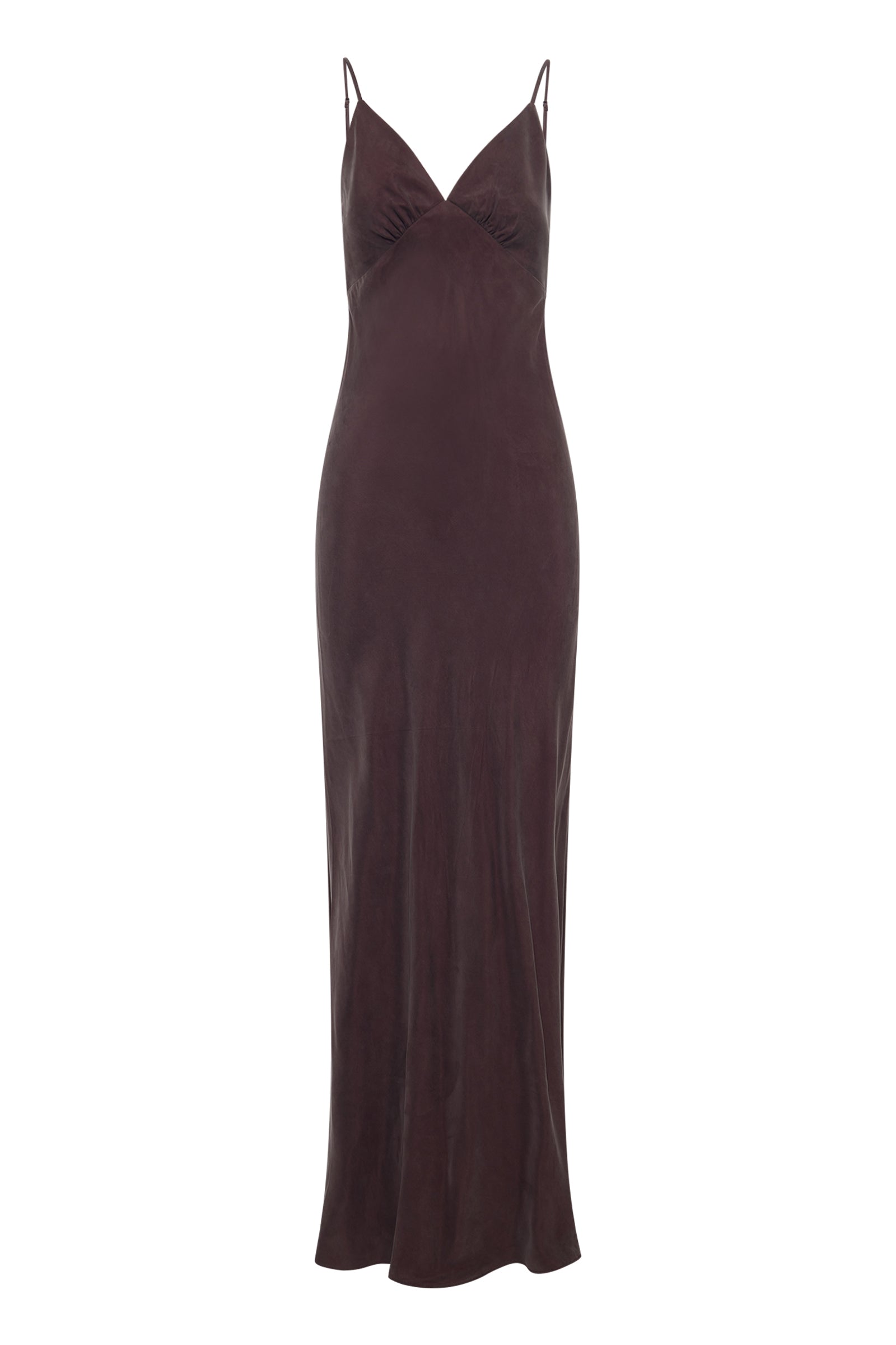 The Raven Cupro Slip Dress is made in our signature cupro fabrication with a smooth suede hand feel. Cut on the bias, this silhouette drapes over the body softly and finishes ankle length. Features include a v neckline with a gathered under bust seam and adjustable thin straps.