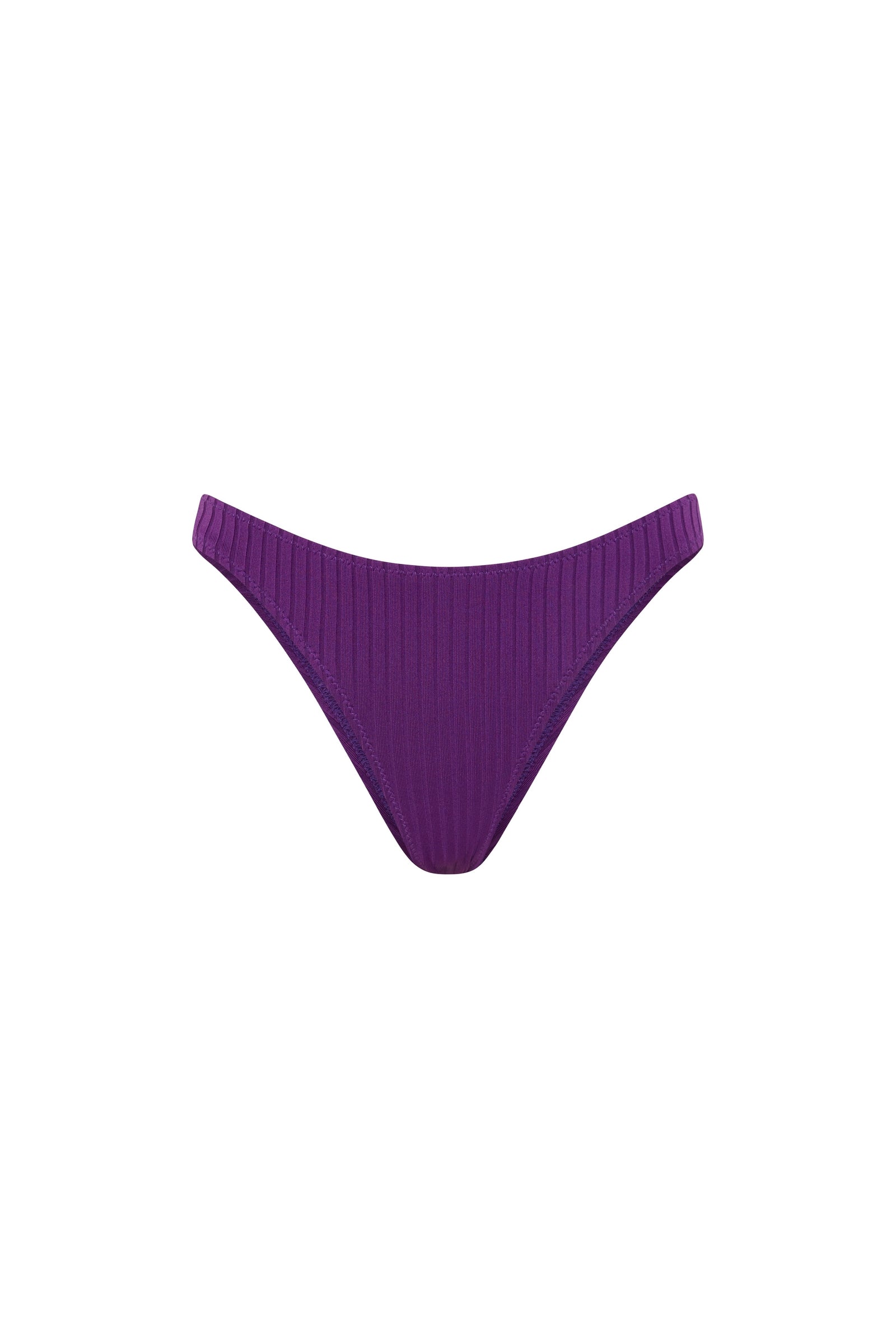 The Rib Cheeky Brief is made from a premium recycled stretch fabrication with a soft hand feel and wide rib. The bottom has a low rise and high leg that can be pulled up or down. This bottom is fully lined with cheeky back coverage.
