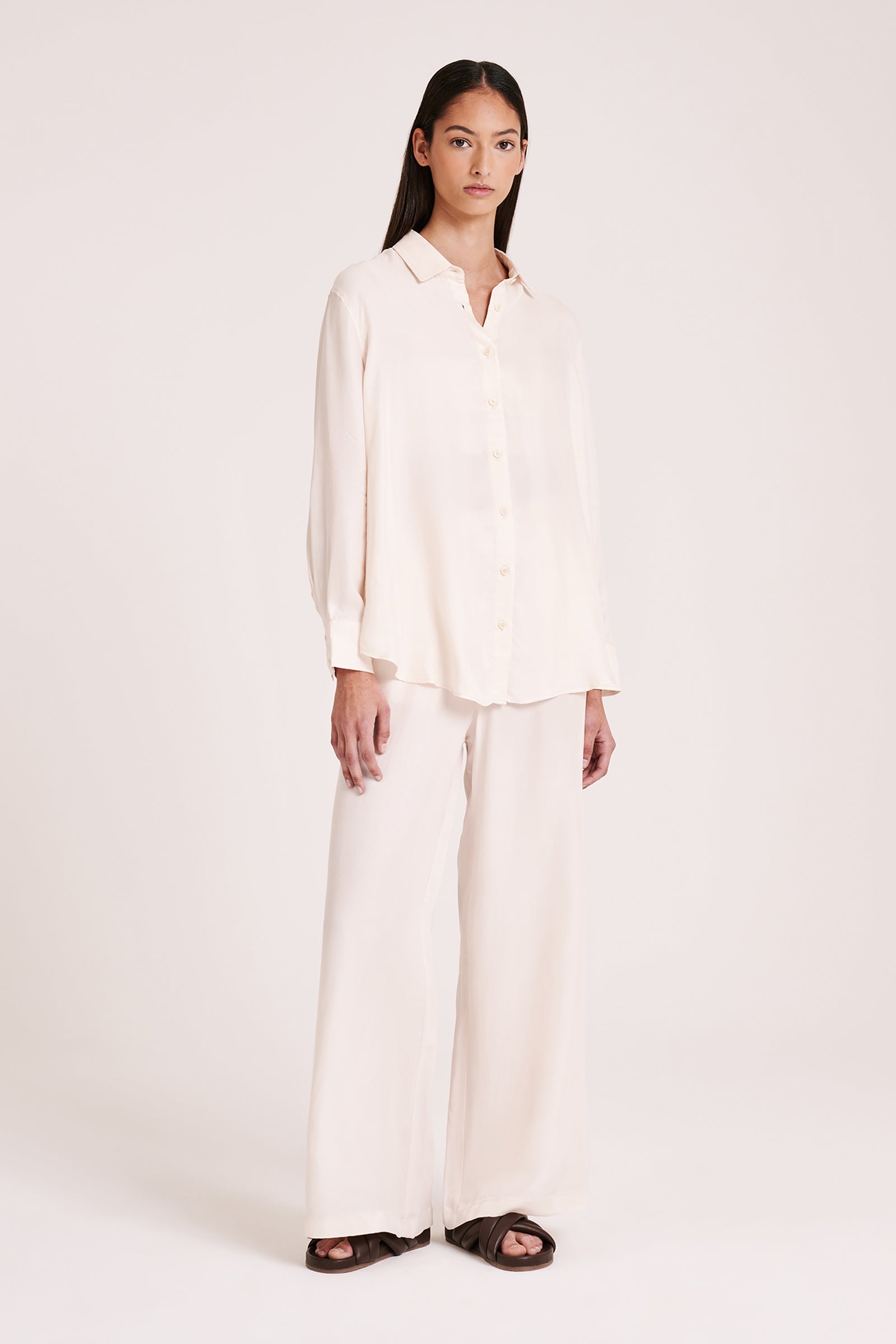 The Rika Cupro Shirt is made in our signature cupro fabrication, with a soft, velvety handfeel.The silhouette is relaxed with drop shoulders and a slightly oversized body. Classic shirting features include a front patch pocket, traditional shirt collar and front button opening.