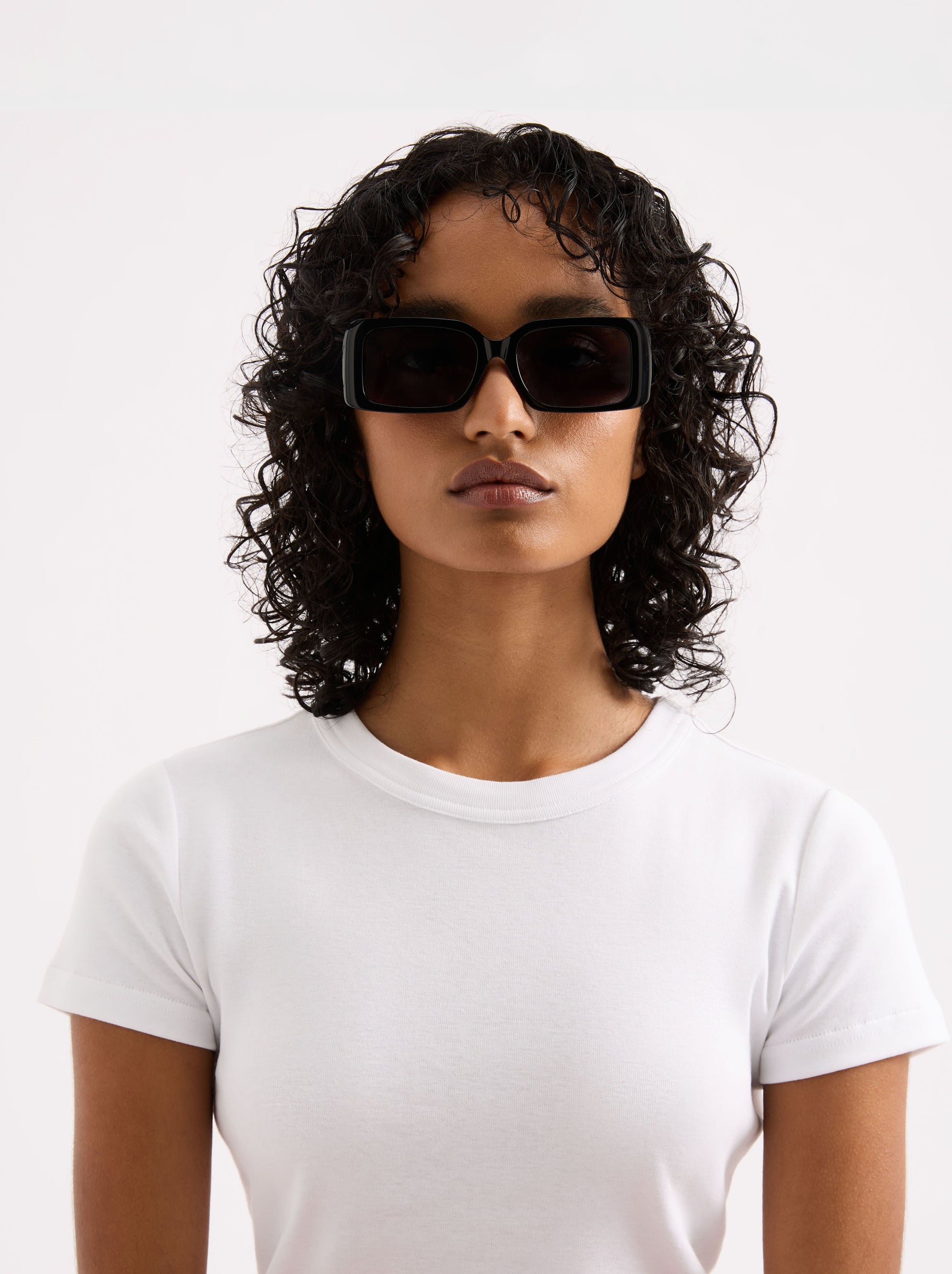The Tanner Sunglasses are made from acetate, and black in colour. They are oversized rectangular shaped frames with gold Nude Lucy branding on the inside arms. The polarised lenses are Filter Category 3, providing good UV protection and high protection against sun glare.