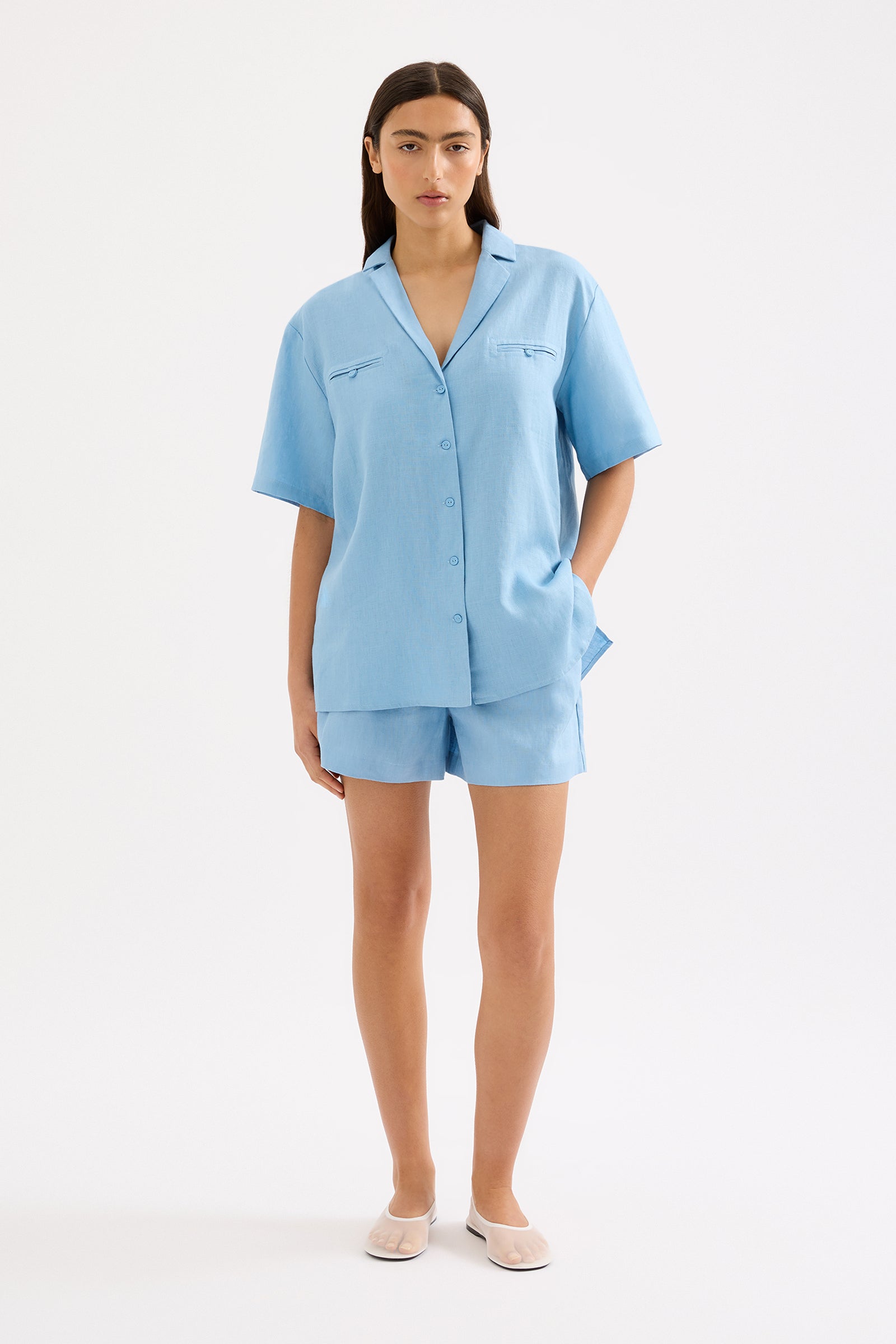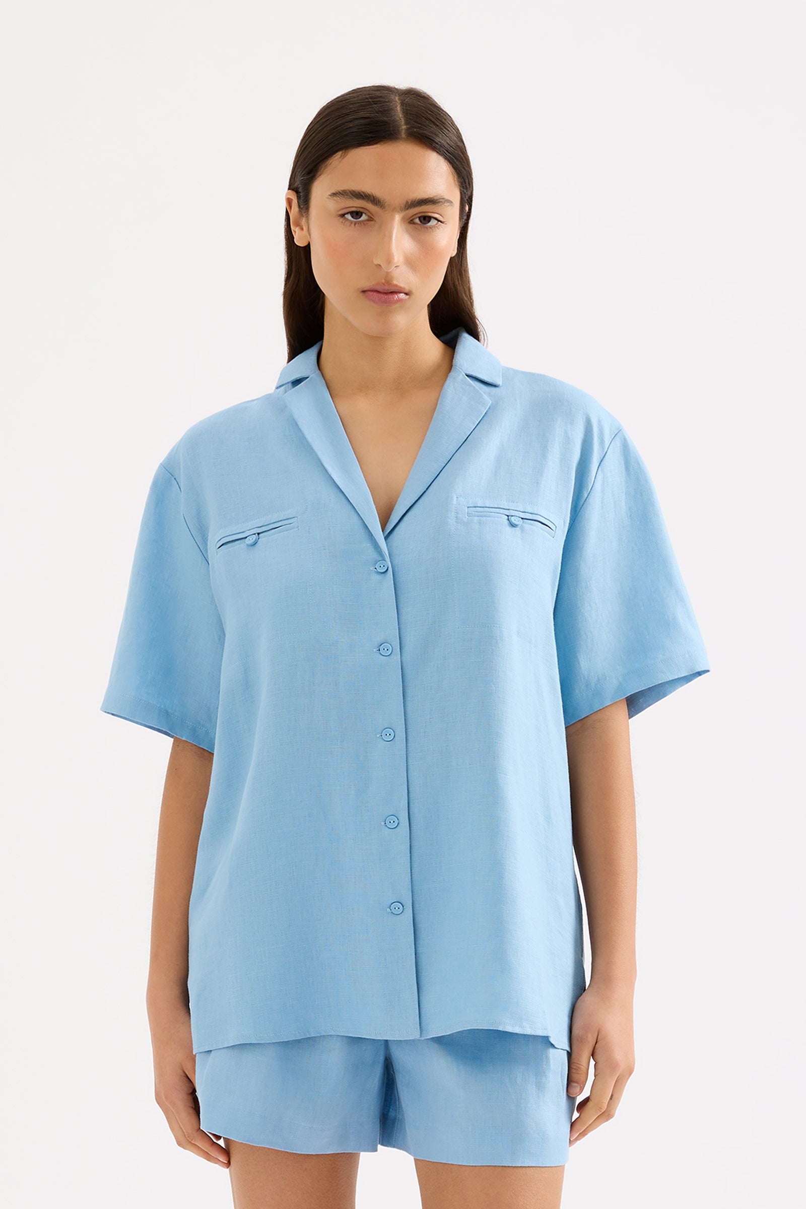 The Thilda Linen Shirt is made from a premium 100% linen which has been washed for a soft, breathable hand feel. The silhouette is relaxed with a dropped shoulder and slightly oversized body. Length finishes below the hips. Features include classic shirting details, front pocket with button closure and front button opening.