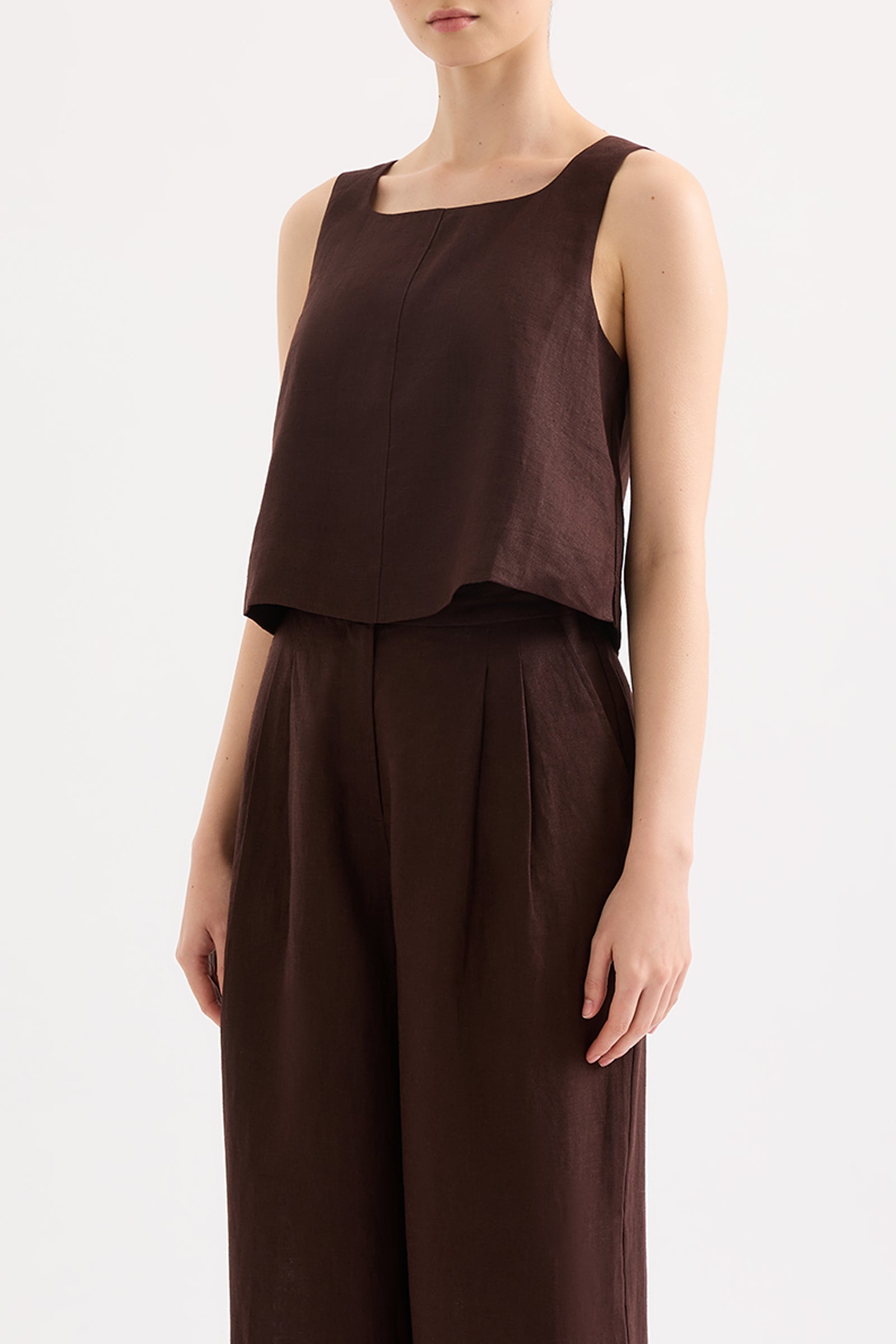 The Thilda Linen Top is made from a premium linen which has been washed for a soft, breathable hand feel. The silhouette is a relaxed A-line shape which finishes above the hips. Features include a scoop neckline and small slits at side seam. This top is fully lined.