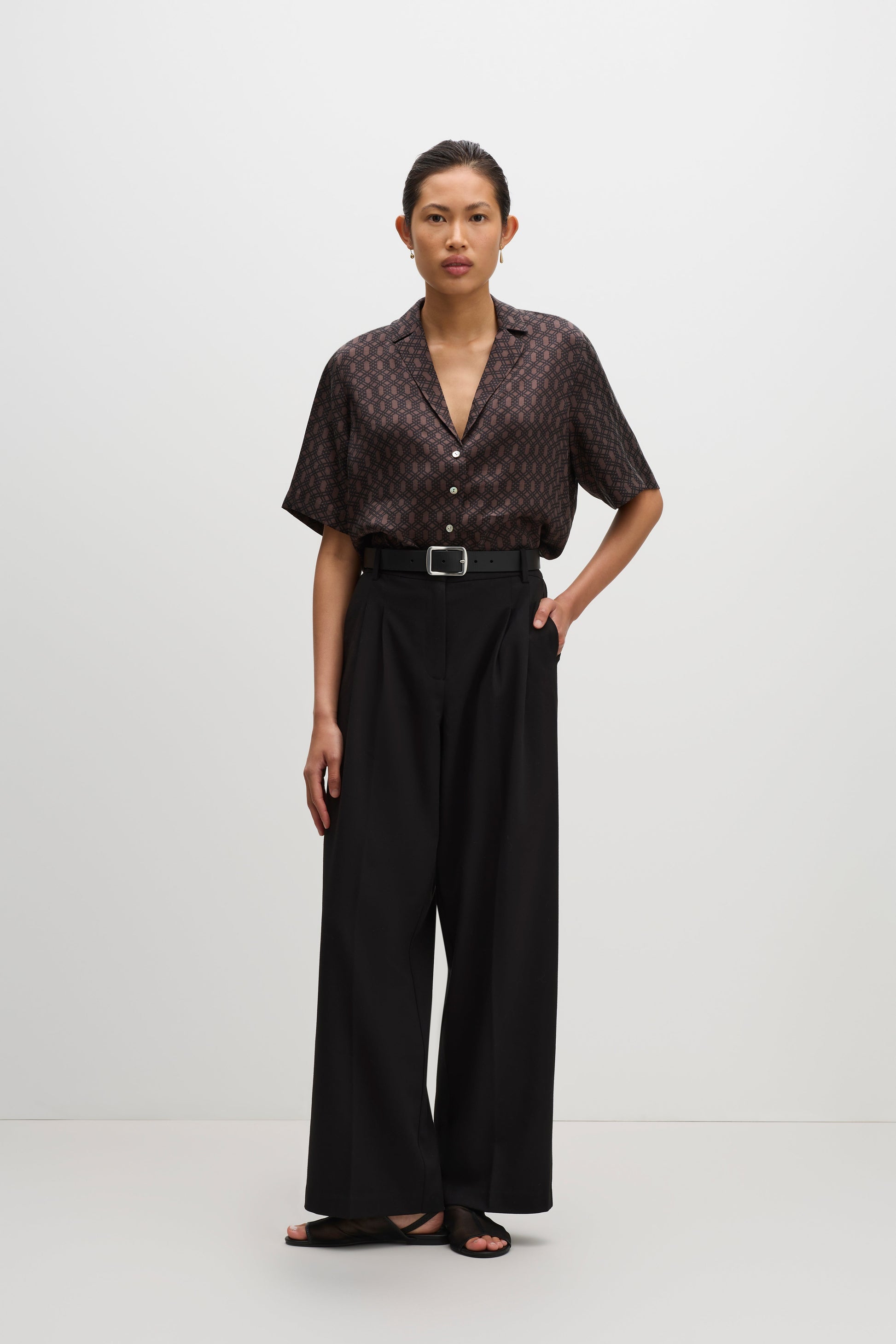The Yasmeen Shirt is made from a lyocell blend fabrication in our exclusive Yasmeen print. The silhouette is relaxed and slightly oversized body. Length finishes below the hips. Features include classic shirting details with back yoke and slits at side seams.
